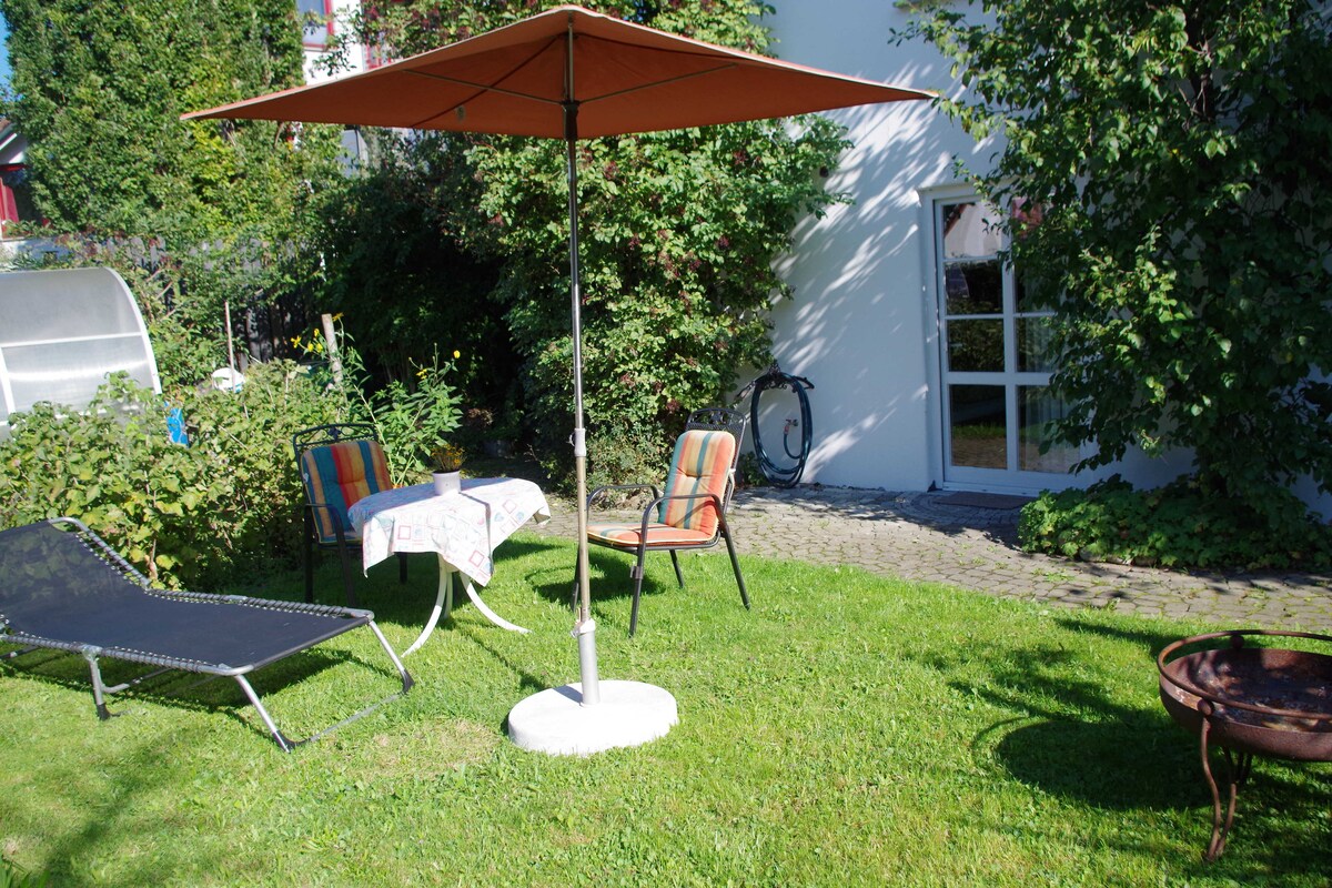 Studio de vacances entièrement meublé et équipé avec 2 lits. Vous aurez votre entrée séparée et votre propre salle de bains neuve, votre propre place dans le jardin avec des chaises confortables, une table et un parasol. Hergensweiler est un charmant petit village situé entre l'Allgäu et le lac de Constance. Votre studio sera le point de départ de nombreuses visites fascinantes dans la région. Avantages supplémentaires pour nos clients : AllgäuWalserApp, qui comprend de nombreuses réductions et privilèges ; disponible pour les réservations de 3 nuits ou plus.