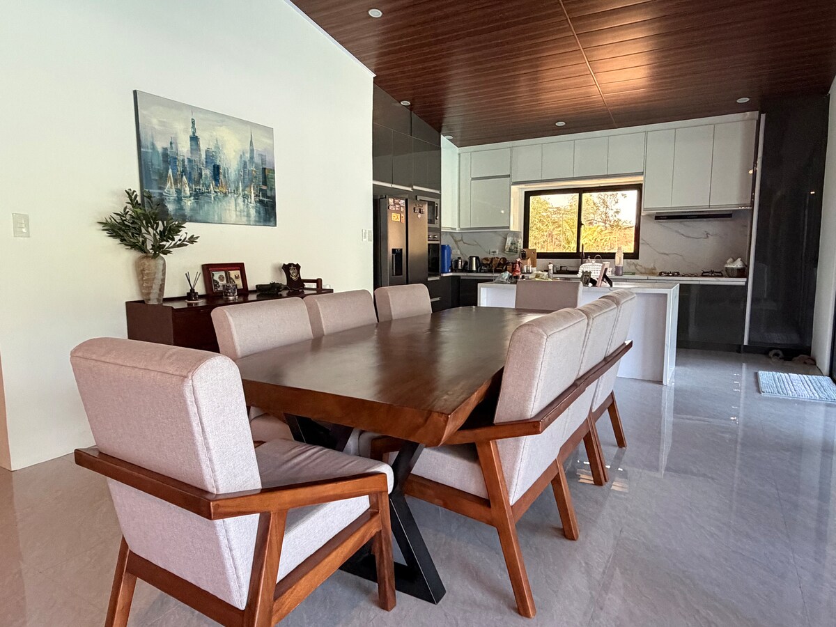 Nous pouvons accueillir une capacité d'accueil de 10 à 25 personnes ÉQUIPEMENTS : 3 chambres avec climatisation, 4 T&B avec chauffage Piscine extérieure en eau douce avec piscine pour enfants Salle de réception (100 personnes) 3 smart tv w netflix Wi-Fi Wi-Fi 300 Mbit/s. Cuisine avec réfrigérateur, cuiseur à riz, bouilloire électrique, four à micro-ondes, ustensiles de cuisine de base Karaoke via Youtube, haut-parleur avec 2 micro sans fil Cuisinière à gaz gratuite. Les voyageurs peuvent cuisiner. 5 Tables et 25 chaises Stationnement Griller Jeux de société Tennis de table. Volleyball en plein air Bon feu Nous pouvons émettre un récépissé sur demande