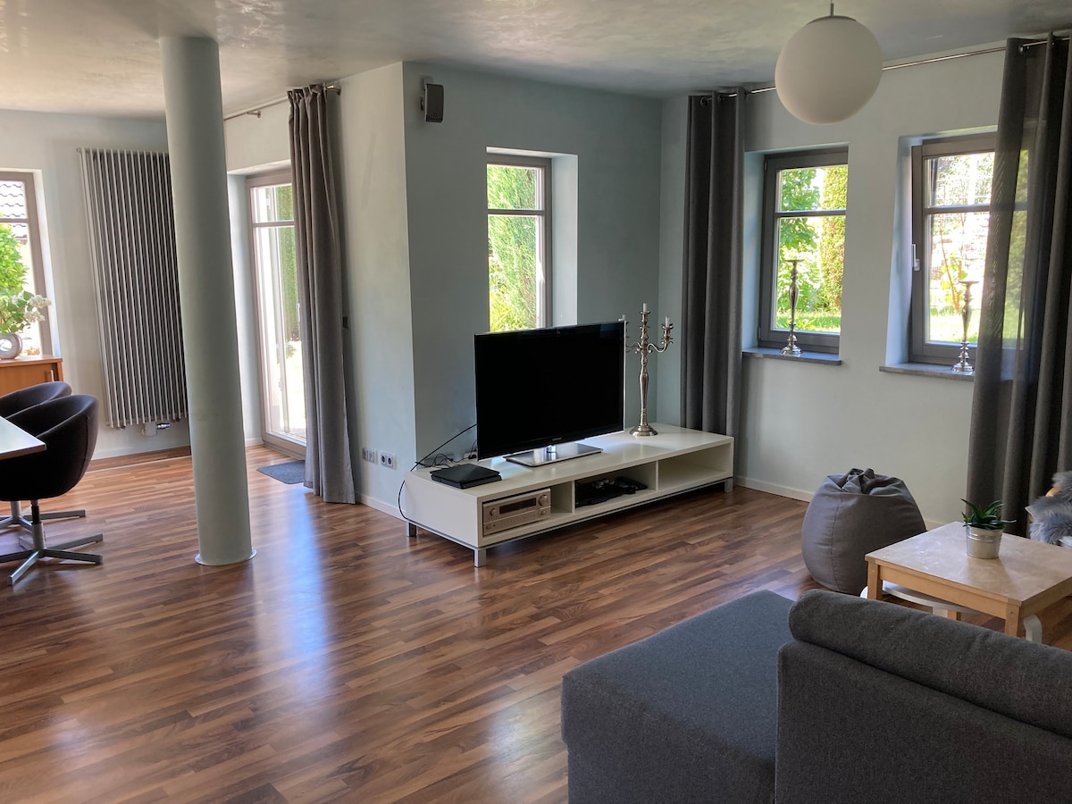 Studio avec cour intérieure près de la Bergkirchweih et des cliniques Notre nouvel appartement d'hôtes se trouve à la périphérie de la vieille ville d'Erlangen, entre Theaterplatz et Burgberg. Juste en face se trouve la clinique Kopfklinik. L'appartement a un concept d'espace ouvert et des plafonds surélevés. Vous pouvez volontiers partager le beau jardin intérieur. Le centre-ville, le jardin du château et le Burgberg sont accessibles à pied en quelques minutes. Le bus et la gare sont accessibles à pied, ainsi que Kaufland, de nombreux cafés et restaurants.
