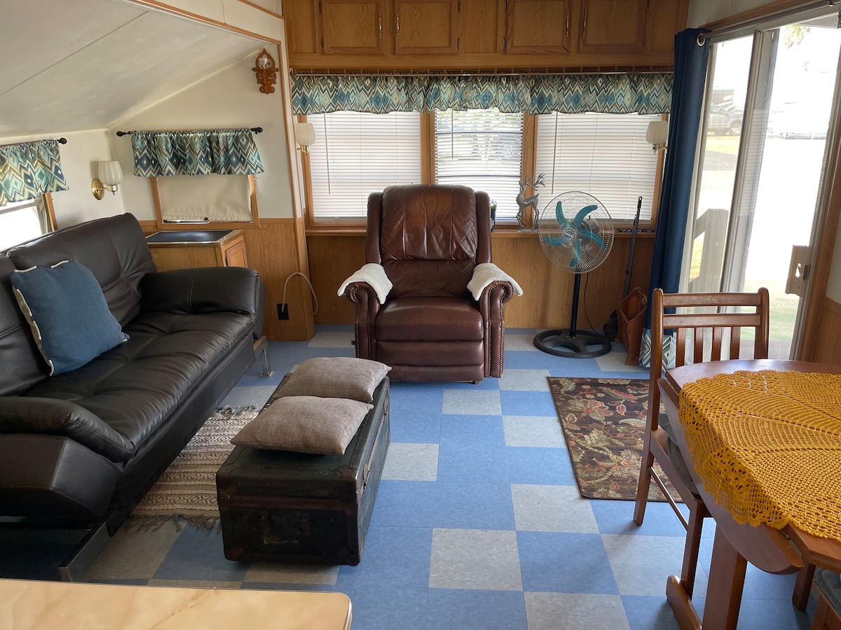 Une 5e roue, cet espace est un endroit magnifique et tout sauf ordinaire, pour ceux qui apprécient les belles choses de la vie. Spacieux, meublé avec tout ce qu'il faut. Le lit king size et le lit queen size recouvert d'une cachette pour 4 personnes confortablement. C'est dans un quartier résidentielle tranquille dans une cour clôturée. À quelques pâtés de maisons des petits magasins et de la laverie automatique et à quelques kilomètres de Walmart et de dizaines de restaurants et de magasins