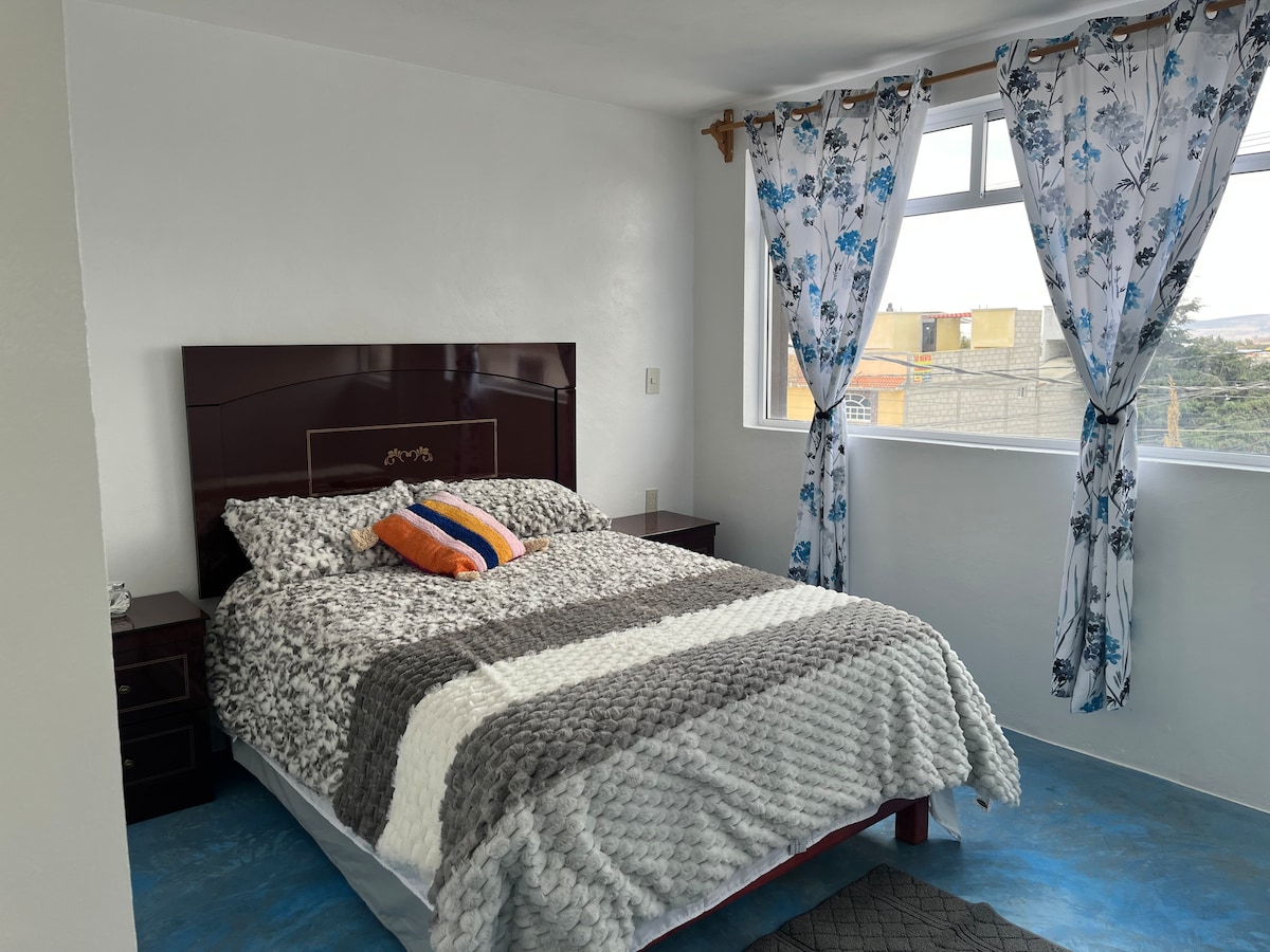 Segunda planta de departamento. Cuenta con 3 recamaras y un baño. La cocina se encuentra en un espacio aparte y es compartida. Contamos con estacionamiento, wifi y orientación turística sin costo adicional. Ofrecemos desayuno americano a nuestros huéspedes, incluido en el costo. El departamento se encuentra dentro de la casa.