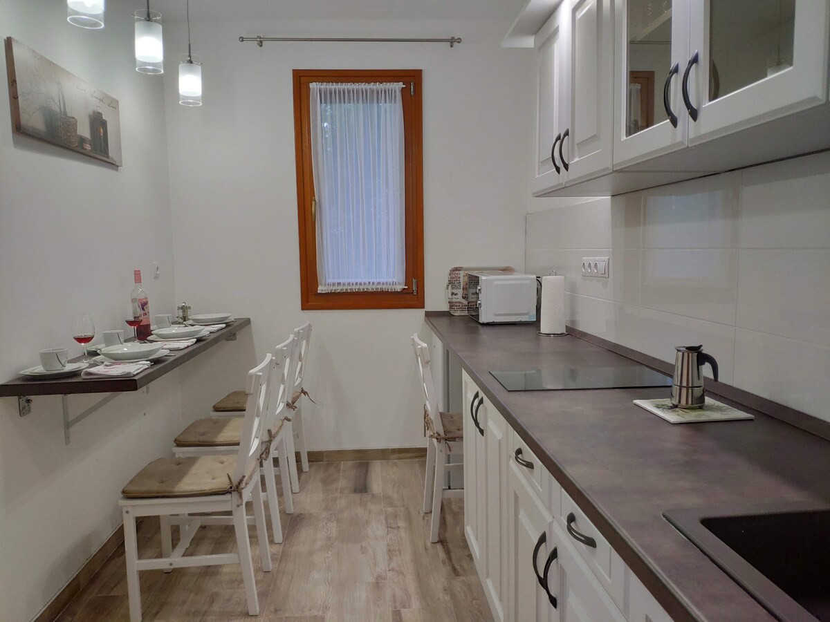 Nous vous proposons nos appartements élégants dans un immeuble d'appartements récemment construit, situé dans la banlieue de Veszprém, à 8 minutes en voiture du centre-ville. Parking gratuit dans la cour. Cet appartement dispose également d'un sauna infrarouge. Il y a un grand lit double dans la chambre et un canapé-lit dans le salon. Idéal pour 2 adultes + 2 enfants. Dans la cour, vous trouverez un jacuzzi chauffé, dont l'utilisation est illimitée pour les clients de nos trois appartements.
