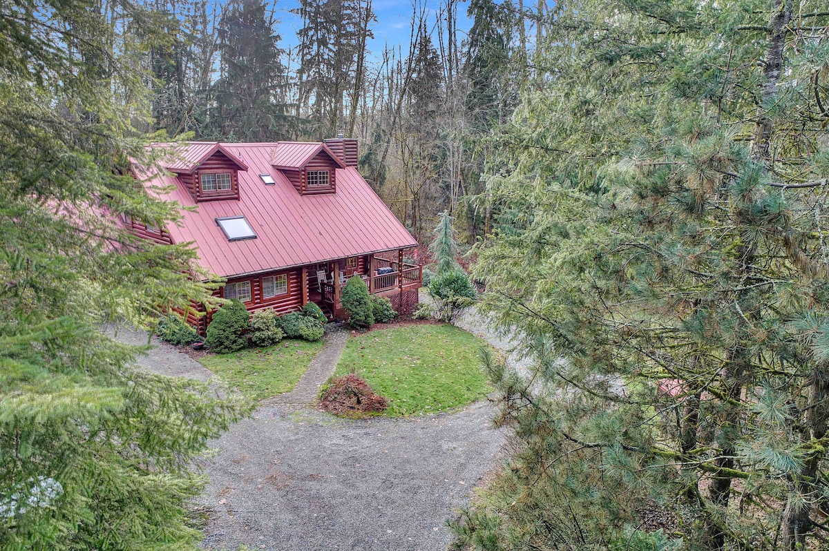 Cette maison d'une chambre entièrement équipée est située sur cinq acres boisés, en face de l'allée de la résidence principale de l'hôte. Dans le passé, la maison était utilisée par mes beaux-parents. L'emplacement est très calme avec un sentier de randonnée sur place à travers des arbres à feuilles persistantes majestueux. Nous sommes à moins d'un mile de commerces et de restaurants. Nous sommes à moins d'une demi-heure de route de Seattle et Everett, dans l'État de Washington.