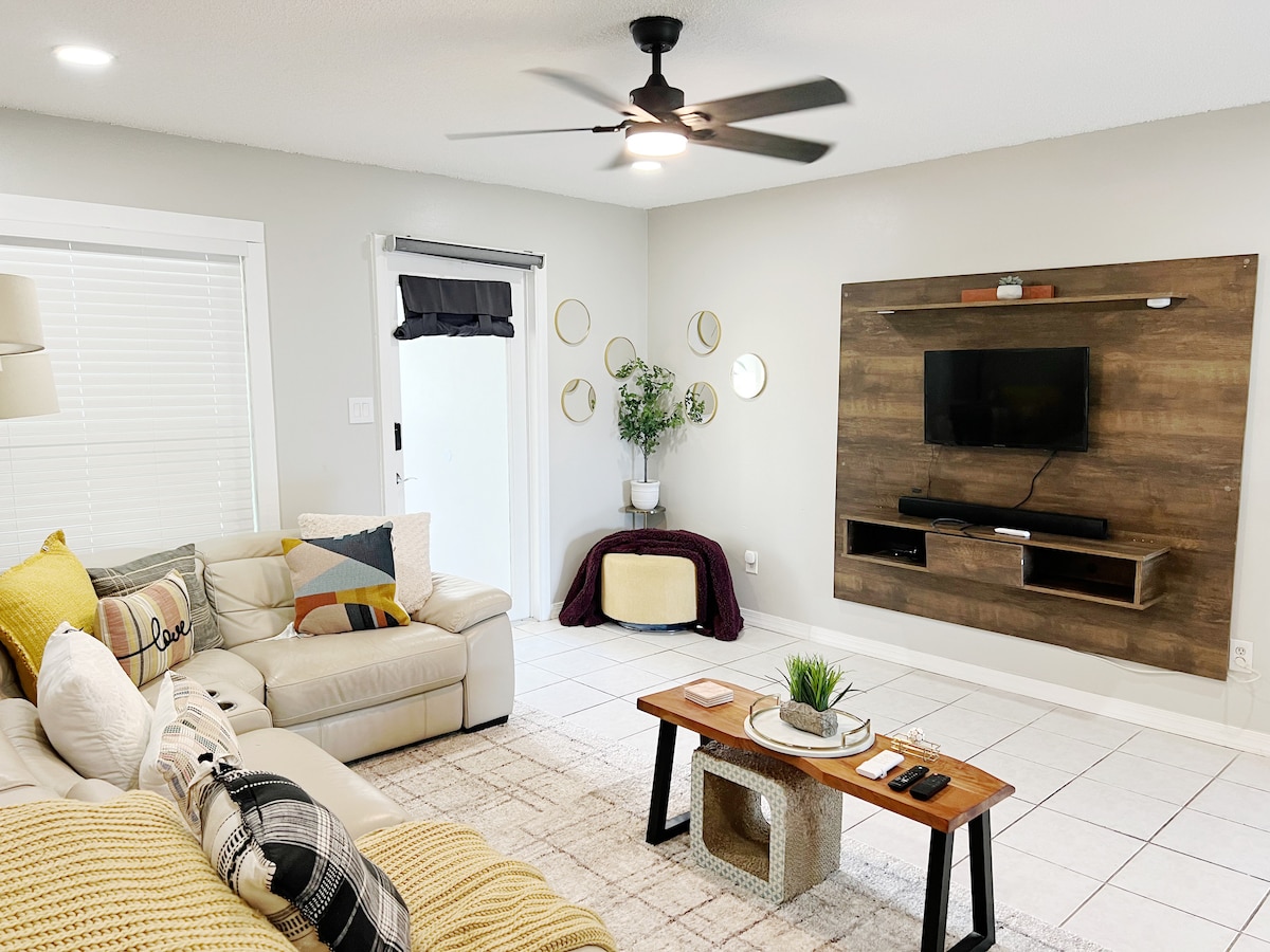 Experience Modern Comfort at an Affordable Price. Enjoy a stylish experience at this centrally-located place in Tampa’s Seminole Heights. Completely rebuilt and designed for long and short term comfort and luxury! This 910 sf apartment is tucked away in a cozy neighborhood within walking distance to Starbuck! 17 mins from the airport, 15 mins to Stadium, and Ybor City, 7 mins to Lowry Park Zoo, 9 mins to Downtown, and 12 mins to Amalie Arena.