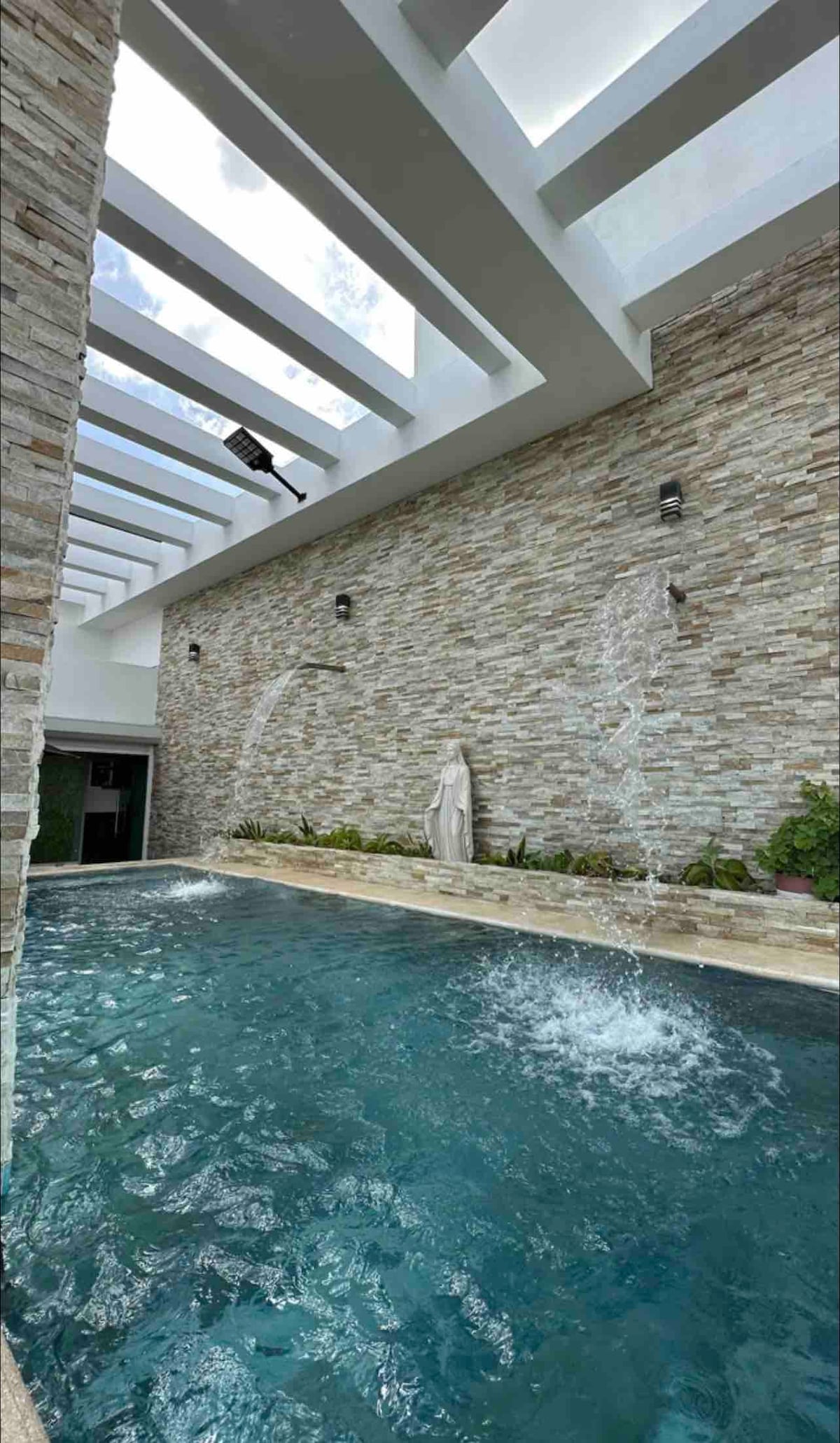 (DAYPASS) ESTE ANUNCIO ES (DAYPASS) Terraza privada, techada y semiabierta, diseñada para crear un ambiente íntimo y acogedor. Disfruta una cama inflable doble preparada con sábanas suaves, luz natural, detalles cálidos y una atmósfera perfecta para desconectar. Cuenta con piscina tipo plunge, cocina exterior equipada y área lounge para relajarte con total privacidad. Ideal para pasadías o estancias cortas.