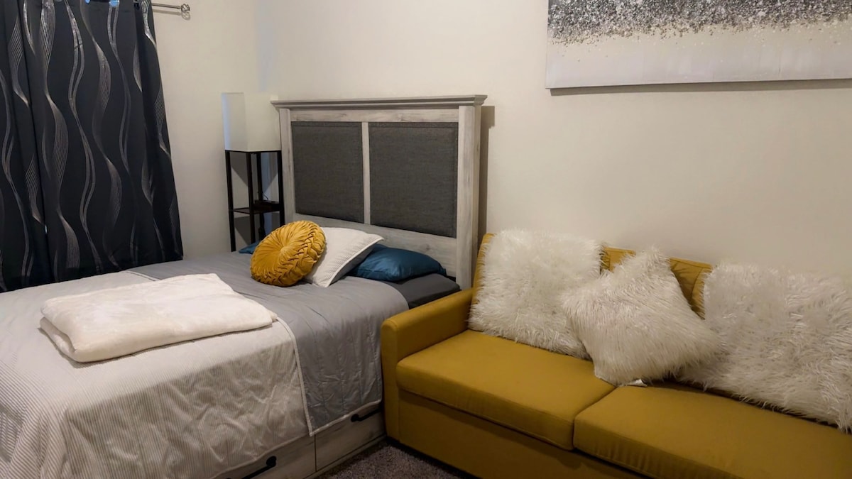 Chambre avec porte d'accès privée, nouvellement meublée.