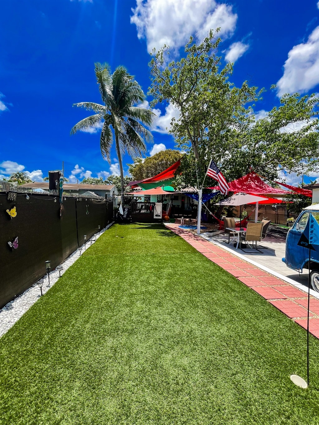 Bienvenue dans notre oasis tropicale moderne, où la commodité urbaine rencontre les équipements de villégiature. Cette maison peut accueillir confortablement 9 personnes, avec 3 chambres, 2 salles de bains, une salle de jeux colorée, un salon accueillant et une cuisine entièrement équipée. Sortez dans la vaste cour arrière, avec un mini-terrain de golf, un jacuzzi et un charmant belvédère avec un barbecue. C'est la retraite parfaite pour un divertissement sans fin et des souvenirs inoubliables, et à quelques pas de nombreuses attractions de SoFlo.