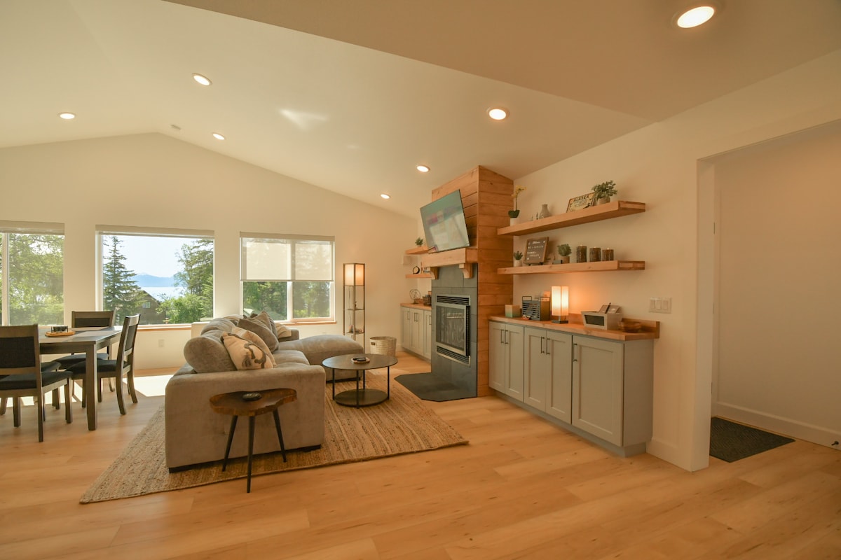 Profitez d'une belle vue sur le lac et la montagne dans un style moderne ! Détendez-vous dans notre luxueuse salle de bain de type spa avec baignoire, deux pommes de douche et planchers chauffants, et profitez de la cuisine dans notre cuisine rétro unique. À seulement 2,5 miles du célèbre Homer Spit et à quelques minutes de toutes les commodités, galeries, brasseries, charters, patinoire de hockey et de l'aéroport.