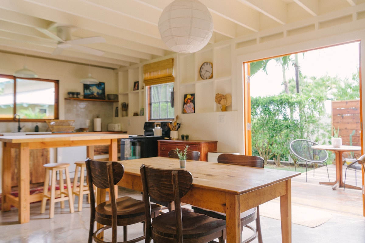 Niché dans une forêt hawaïenne paisible, ce refuge moderne offre l'escapade romantique parfaite à seulement 10 miles des plages, de l'aéroport et de la ville de Kona. Conçue avec soin pour les couples, les voyageurs en lune de miel et ceux qui ont soif de sérénité, cette retraite autonome allie style minimaliste et beauté. Détendez-vous dans le jacuzzi privé en pleine nature, admirez les couchers de soleil depuis le lanai ou faites un barbecue sous les étoiles. À l'intérieur, profitez d'un espace créatif de 384 pieds carrés qui capture le luxe, la nature et l'isolement.