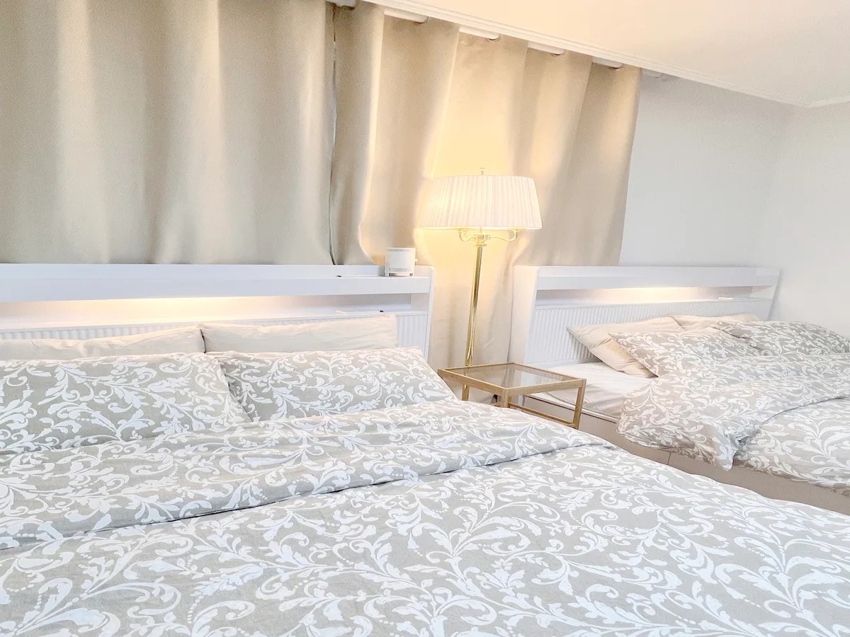 stay Amsa # Amsa Station 2 minutes # Lotte Tower # Asan Hospital # KSPO # Gangnam # Lotte World # Airport pick-up hotel bed bedding