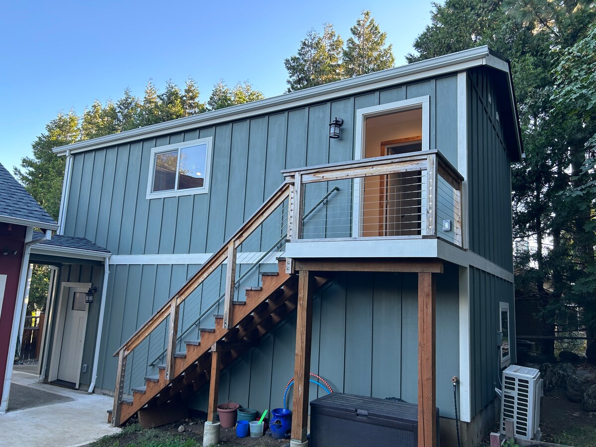 Profitez d'une escapade confortable avec votre propre entrée privée dans la belle ville de White Salmon. Un nouveau lit Queen Size a été installé à la place d'un lit complet pour plus de confort. Nous demandons aux voyageurs de respecter nos voisins en gardant leurs distances et en garant leurs voitures directement devant la propriété. Ce logement confortable d'une chambre est très propre, nouvellement construit et décoré avec charme. White Salmon est une petite ville située sur une courte colline depuis le pont jusqu'à Hood River.