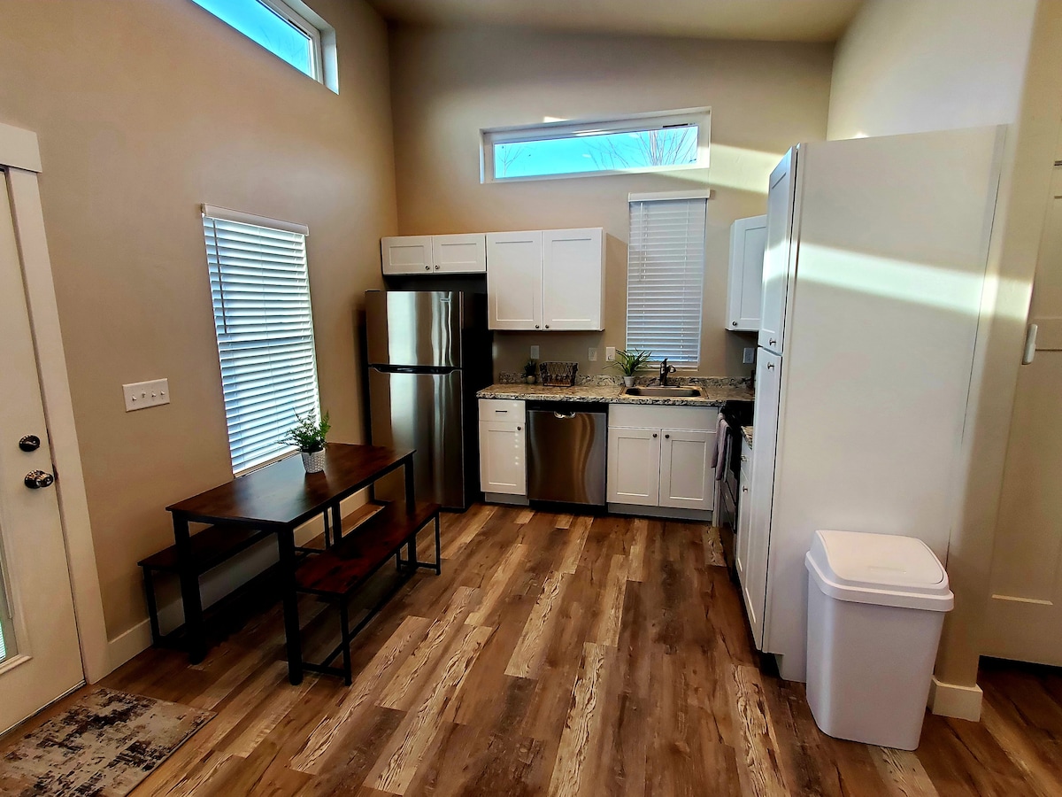 Détendez-vous dans cet espace calme et élégant. Au centre d'Ogden, la ville est à environ 5 minutes et les stations balnéaires sont à moins de 30 à 45 minutes. Niché dans un quartier calme et sûr, cet endroit dispose de tout ce dont vous avez besoin pour votre séjour de voyage ; avec une kitchenette, un lave-linge/sèche-linge, une salle de bain, un lit queen size, une table à manger, un coin salon, un bureau, une CONNEXION WI-FI, le câble et un parking gratuit à proximité de la porte d'entrée privée. Pas de frais de ménage ! En outre, les voyageurs ont accès à une enceinte extérieure pour les animaux de compagnie qui ont besoin de s'étirer.