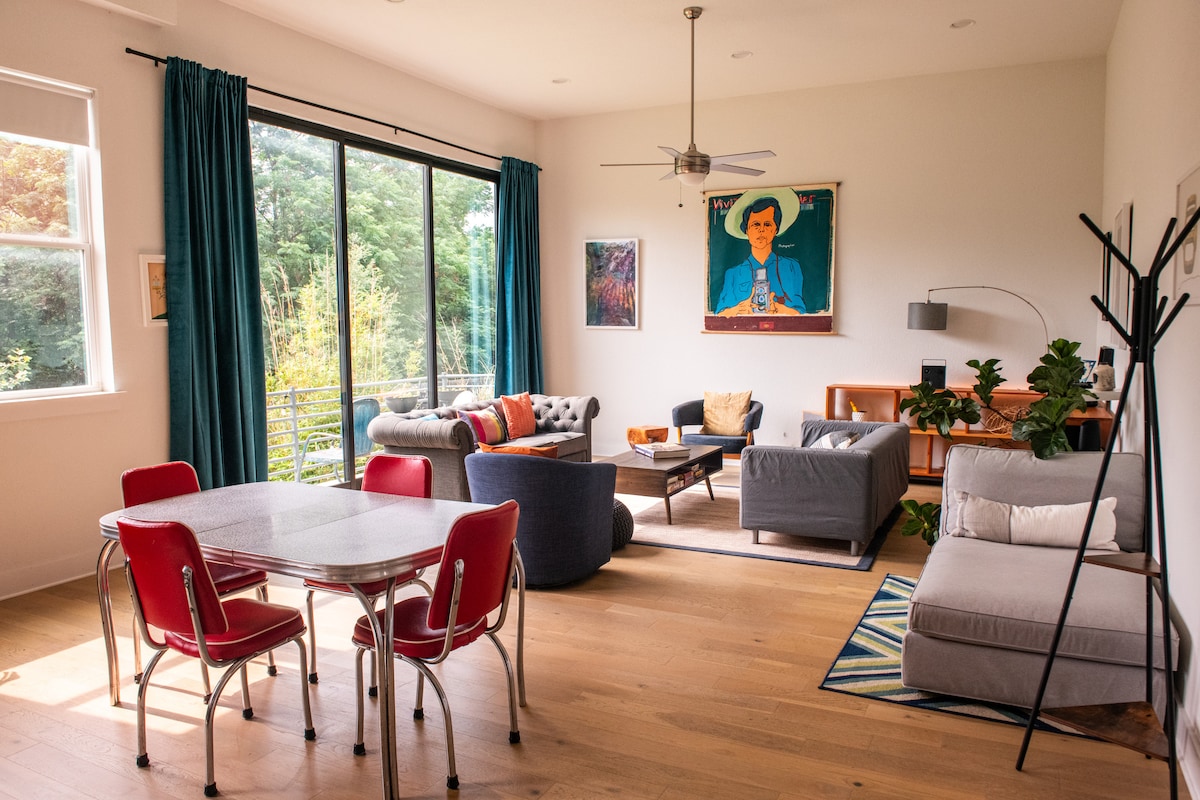 Détendez-vous à THE PORCH HOUSE, un chalet moderne aéré de deux chambres au cœur du quartier branché d'East Austin. Baigné de lumière naturelle et doté de finitions modernes, ce chalet confortable est idéal pour une escapade d'un week-end ou un séjour prolongé ! Vivez comme un habitant + séjournez près du meilleur de la scène gastronomique d'Austin, des sentiers de randonnée + de la vie nocturne animée. Idéalement situé à 2-10 minutes en voiture de certains des meilleurs bars, restaurants et cafés d'Austin.
