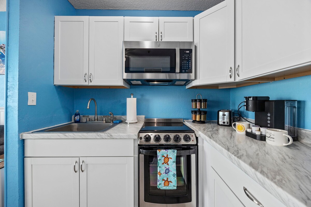 Détendez-vous dans cet appartement en bord de mer rénové au Beach Colony Resort. Dotée d'un mobilier moderne, d'un lit king size moelleux, d'un canapé-lit, d'une cuisine entièrement équipée et d'une salle de bain spacieuse, cette retraite a tout ce dont vous avez besoin pour une escapade paisible. Le complexe a quelque chose pour tout le monde avec des équipements comme des piscines intérieures et extérieures chauffées, des bains à remous, une rivière paresseuse, un bar tiki, un restaurant, des cafés et des boutiques de cadeaux, un centre de remise en forme, un sauna, une arcade et des pelouses magnifiquement aménagées avec des parasols, des hamacs, des chaises longues et des planeurs.