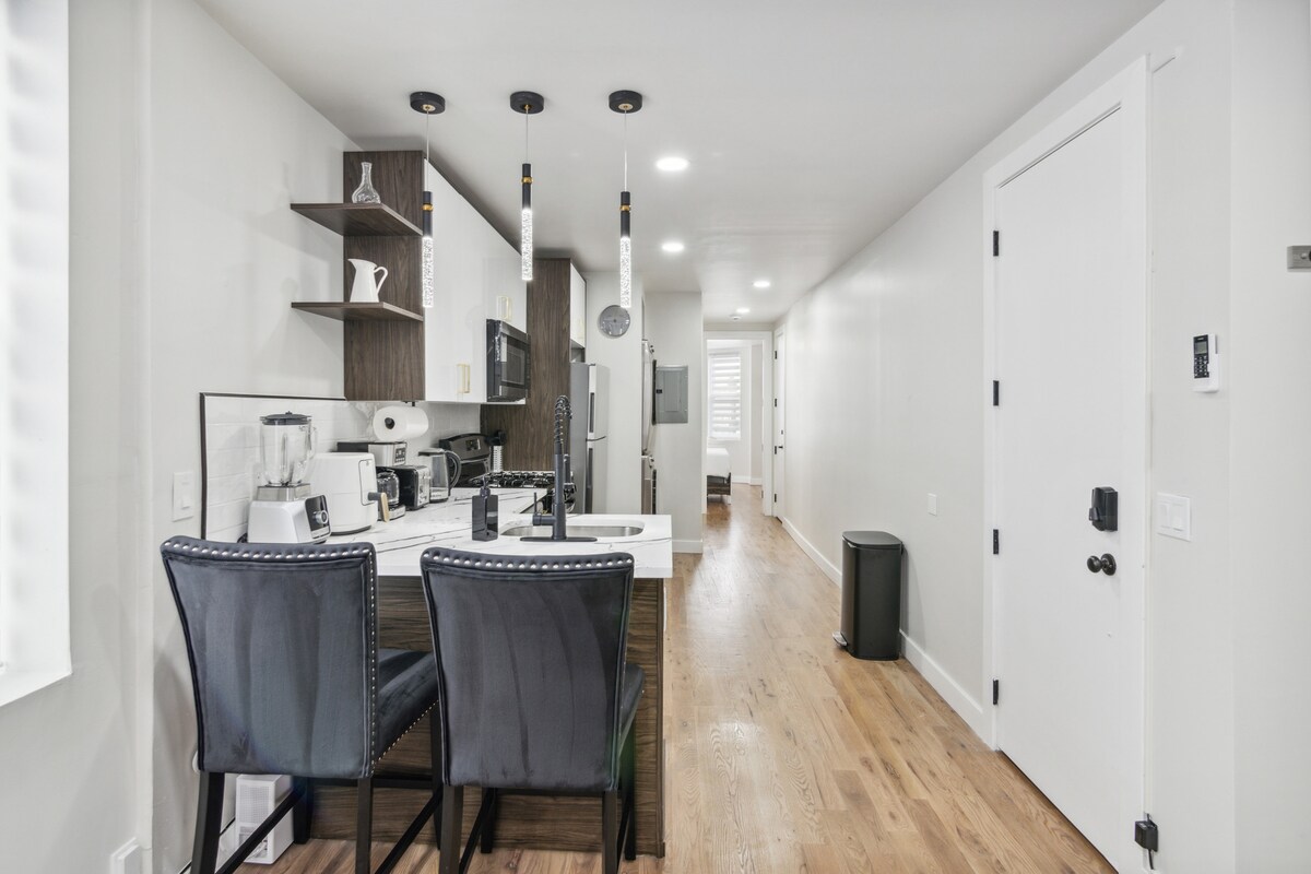 2 chambres modernes dans le quartier animé de Harrison, à 14 minutes à pied de PATH pour un accès facile à New York ! Les hauts plafonds et la lumière naturelle mettent en valeur l'espace. Détendez-vous avec des couettes moelleuses, des draps doux et des téléviseurs intelligents dans chaque chambre. Parfait pour les familles, les travailleurs à distance ou les groupes ! Marchez jusqu'à la Red Bull Arena, le train, les bars et les restaurants, ou visitez American Dream en 14 minutes. ✔️ 1 place de stationnement gratuite ✔️ 5 lits : 1 king size, 2 queen size, 2 jumeaux ✔️ Cuisine complète Air climatisé✔️ central ✔️ Wi-Fi rapide + bureau Réservez maintenant pour le confort et le style