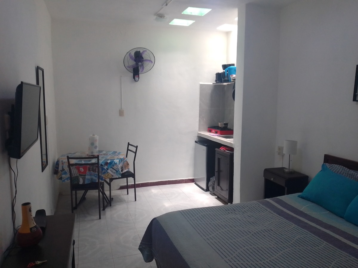 Departamento completo e independiente con entrada independiente, con cocineta y baño, amueblado con todos los servicios, aire acondicionado, cama matrimonial, wifi, tv con netflix, agua caliente. zona segura y conveniente cerca de restaurantes, tiendas, parques y lavanderías. transporte público directo al centro en la esquina, cerca paradero del ietram para el tren maya. ideal para turismo o trabajo, visite los atractivos de la ciudad de merida, playas, cenotes y sitios arqueologicos cercanos.