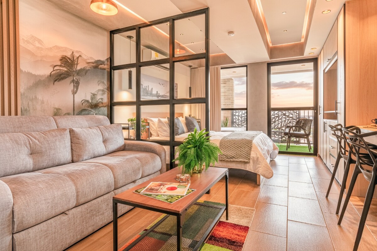 ** UNITÉ EXCLUSIVE SANS FRAIS DE SERVICE AIRBNB ** Situé dans le quartier calme de Cristales de Cali, ce loft de 48m² avec jacuzzi privé et une vue imprenable sur Cali, parfait pour accueillir jusqu'à 4 personnes, est entièrement équipé pour votre confort. Le bâtiment dispose d'équipements tels que : coworking, salle de sport, jacuzzis, aire de pique-nique, cinéma extérieur, et plus encore. À seulement quelques minutes du parc du chien, il combine tranquillité, modernité et confort dans un environnement parfait pour votre séjour !