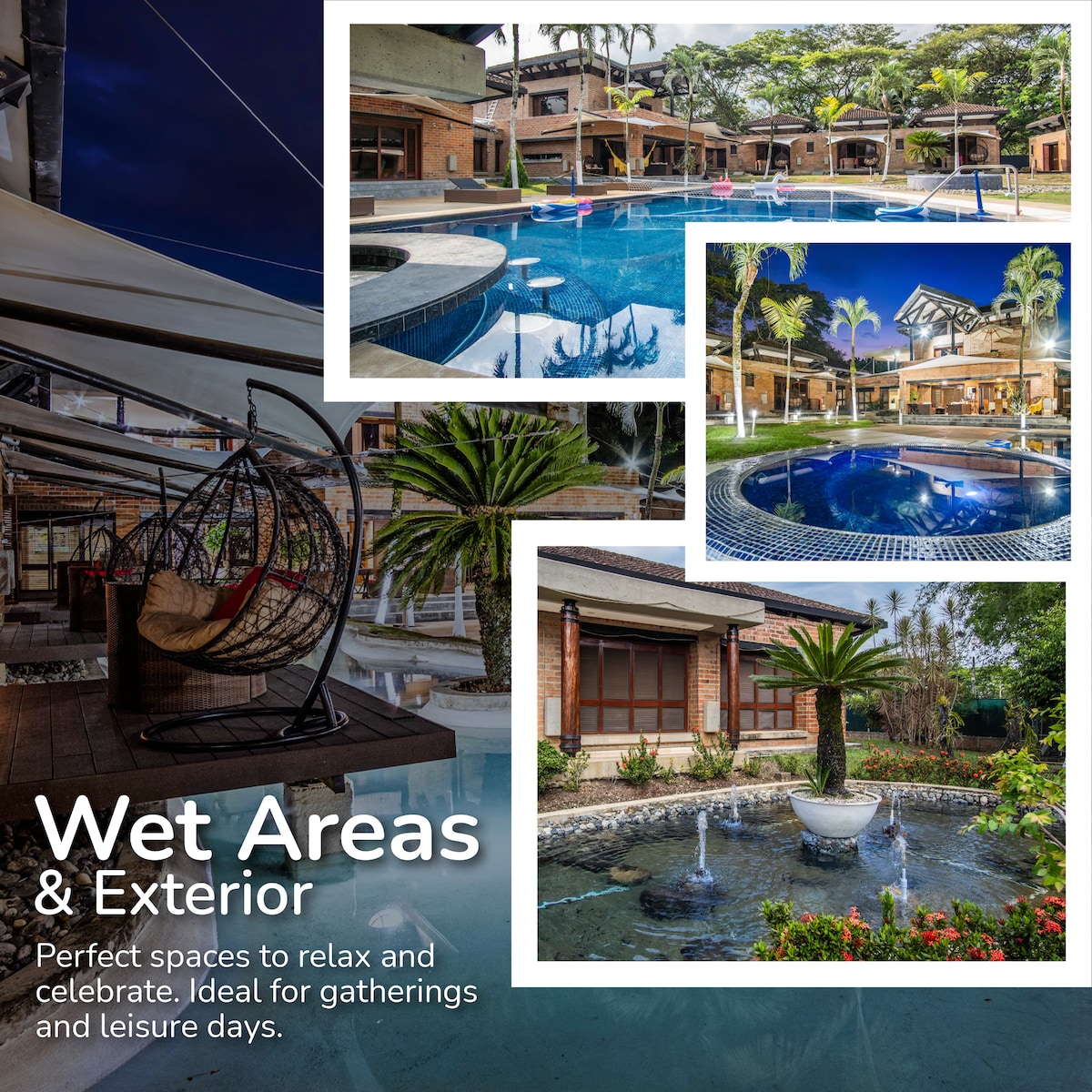 Située à seulement 7 minutes de Cali et sans péage, cette propriété est idéale pour les familles, les amis ou les événements spéciaux. Capacité pour 20 personnes, avec 6 chambres, 3 cabines, lit d'appoint, 6 lits supplémentaires, 5 salles de bains, salon et cuisine spacieuse, salle à manger de 10 places, wifi et excellent éclairage. Espace extérieur avec piscine, terrain synthétique, jeux pour enfants, cuisine pour barbecue, salon insonorisé, hamac, grand parking et accès à la rivière et au lac dans un lotissement sécurisé et entouré par la nature.