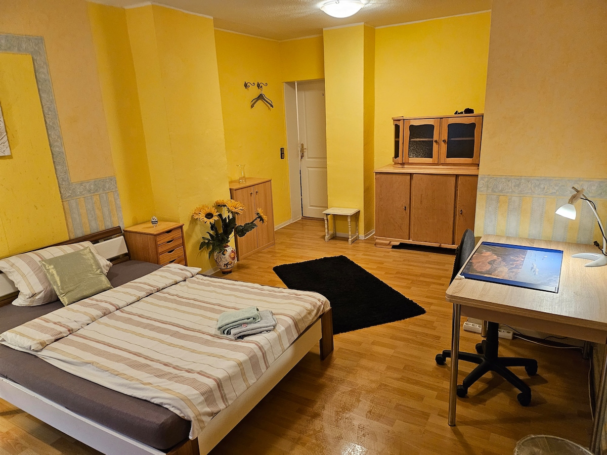 À 5 km d'Aschaffenburg, sur les contreforts du Spessart, je vous propose mon appartement moderne et ensoleillé de 2,5 pièces avec sa propre entrée. Il bénéficie du soleil du matin sur le toit-terrasse avec une vue lointaine et un balcon. Lit de 1,60 m, baignoire, TV, WiFi et kitchenette. Deux chats sympathiques vivent dans la maison. A 15 minutes de l'A3 et de l'A45, mais en pleine nature pour se détendre. Vous pourrez rejoindre une boutique ouverts 24h/24 et des restaurant à quelques pas.