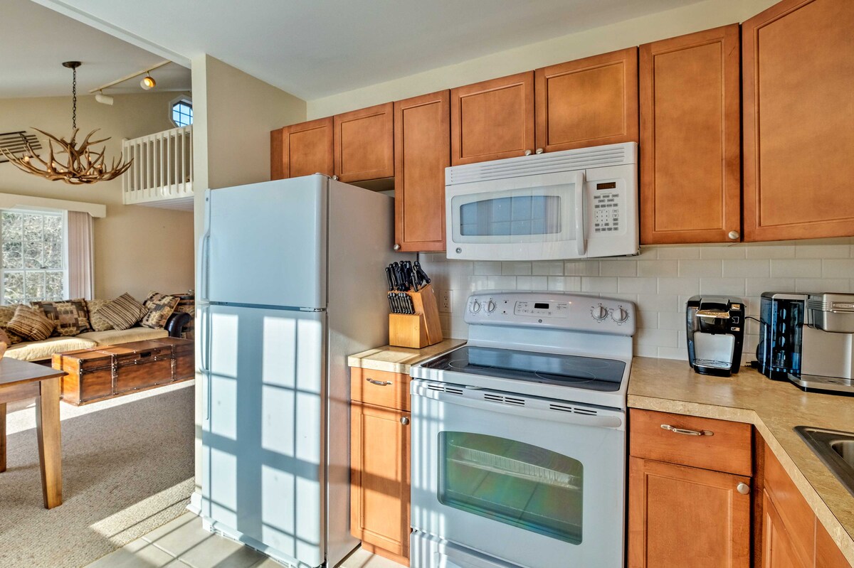 Hunter Mountain 1BR Condo | Cheminée et cuisine