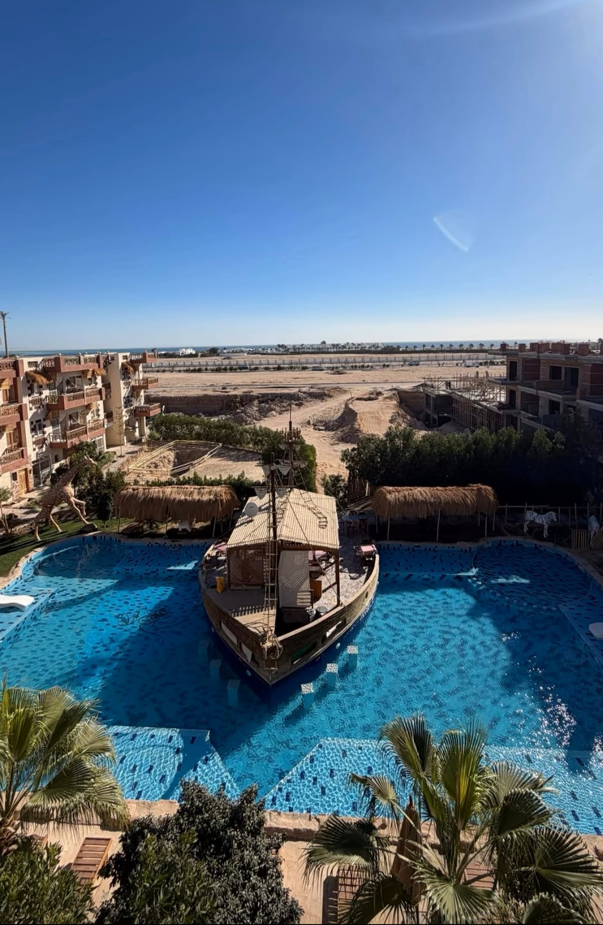 Détendez-vous dans notre confortable studio avec vue sur la mer dans le centre d'Hurghada, juste au bord de la mer Rouge. Parfait pour les couples, les voyageurs en solo ou les petites familles à la recherche de confort, d'emplacement idéal et d'ambiance de complexe hôtelier à proximité du centre-ville. Ce que vous aimerez : Accès gratuit à la plage privée et à la piscine Vue sur la mer Rouge et la piscine depuis votre balcon privé Emplacement privilégié sur Old Sheraton Street – à proximité des cafés, des magasins, de la vie nocturne et des supermarchés Wi-Fi gratuit, sécurité 24h/24 et stationnement sur place Navette gratuite dans la station