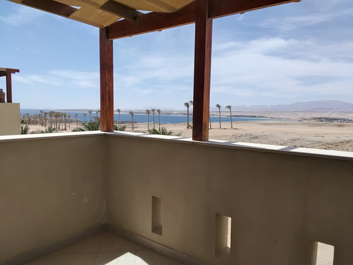 Sur la côte de la mer Rouge, en Égypte, surplombant les majestueuses eaux bleues de la mer Rouge, le plus bel endroit de la mer Rouge, à 5 minutes de plongée en apnée gratuite, récif étonnant et poissons colorés, la vue sur la nature mère sur la terrasse et les fenêtres. Rien ne vaut la vue matinale sur le lever du soleil depuis le balcon, et la météo agréable. ou le coucher du soleil à travers les fenêtres du salon et de la chambre. Veuillez lire ( Autres remarques)