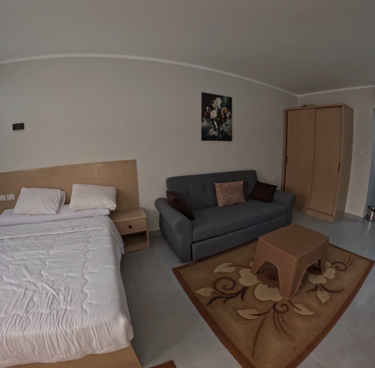Cet espace privé est proche de tout, ce qui facilite l'organisation de votre visite. Une chambre avec piscine, ascenseur dans l'immeuble résidentiel Sheraton Plaza. La maison est située sur la rue Ela Rosa dans la partie la plus célèbre d'Hurghada sur Sheraton Road. L'intéressante promenade du shopping sur Sherry Street se trouve à 3 minutes à pied. Vous trouverez dans la région de nombreux restaurants, une salle de sport, la détente et le shopping. La plage d'El Sakkia ou Blue Beach sont à seulement 3 minutes à pied. Promenade vers la nouvelle marina avec de nombreux cafés et res