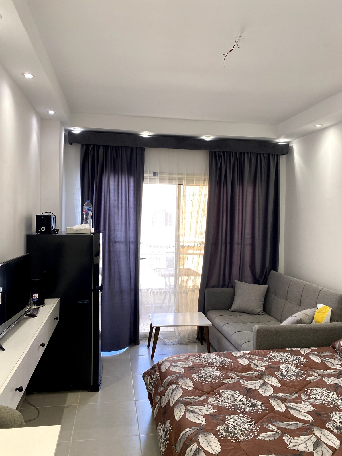 cet appartement dispose de 3 larges piscines pour enfants et adultes, il dispose également d'un jardin et d'une sécurité 24h/24 et il y a une plage gratuite à 5 min à pied de là aussi sur la plage il y a du surf scolaire et vous pouvez voir des coraux colorés et des poissons puis l'appartement est agréable et confortable il y a un salon , 2 balcon, 2 chambres ,une cuisine et une salle de bain il y a aussi un marché près de l'appartement vous pouvez obtenir ce que vous voulez . Dans chaque chambre il y a un ac et wifi aussi et en bas de l'appartement il y a un parking gratuit.
