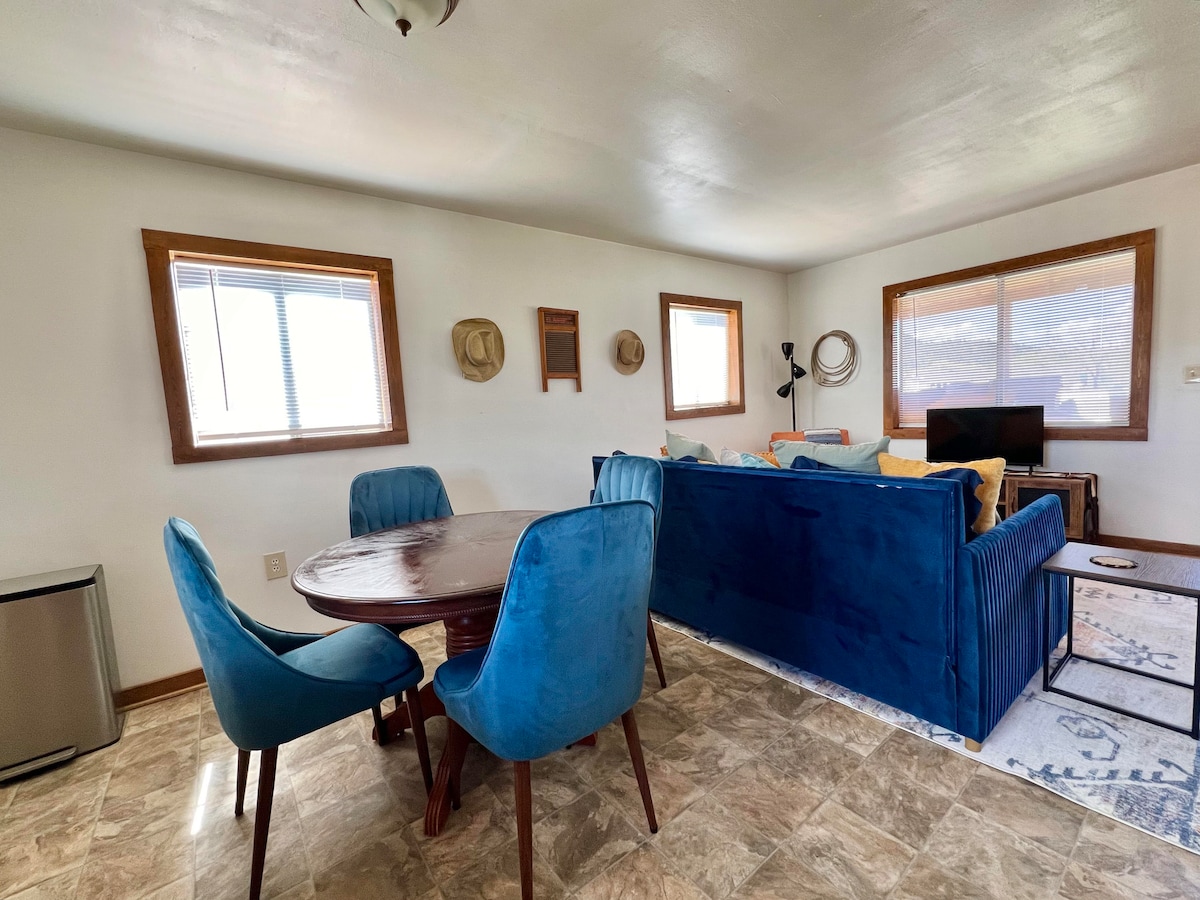 Cette maison de deux chambres et deux salles de bain est proche de tout ! À un mile de l'hôpital et à deux miles du centre-ville de Silver City. Profitez des matinées tranquilles sur le porche arrière et des couchers de soleil du soir sur le porche avant. Visitez notre quartier du centre-ville avec des boutiques, des restaurants et des galeries d'art locaux ou faites de la randonnée et du vélo dans notre quartier historique de P.A., une excellente journée remplie d'aventures dans les pins ! Internet haut débit, télévision 70" pour le séjour, animaux acceptés, cuisine bien équipée et un jacuzzi pour quatre personnes !