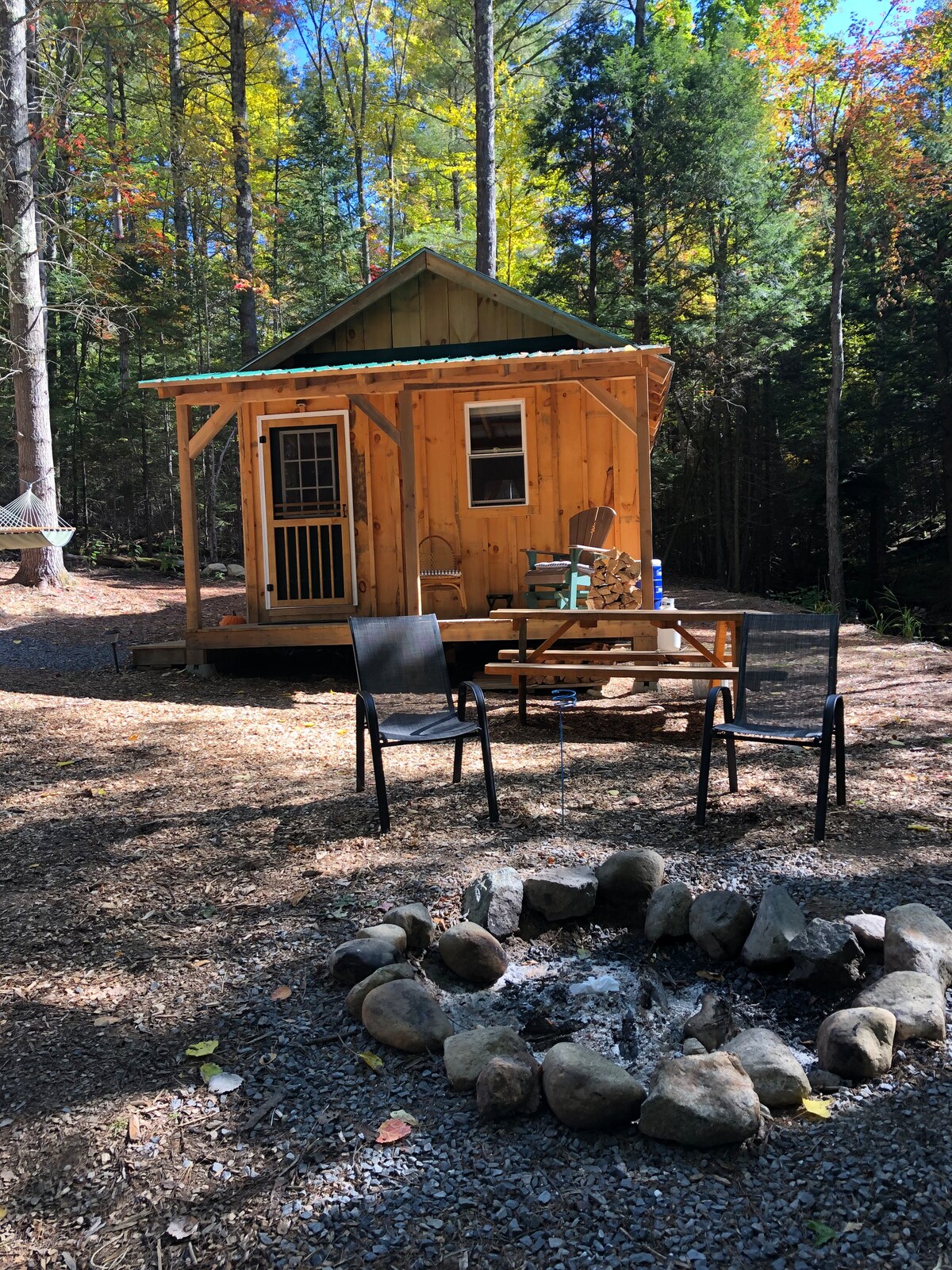 Ressourcez-vous dans ce logement inoubliable niché en pleine nature. C'est une expérience de camping de luxe. Pas de literie fournie, pas d'électricité et pas de plomberie intérieure. La salle de bain est une dépendance et une douche solaire extérieure. Pas d'eau disponible, il y a un petit gril à gaz disponible. Cabane neuve avec lits neufs. Profitez de votre séjour dans les Adirondacks avec un endroit sûr et sec pour camper et vous détendre à côté d'un ruisseau. Près de nombreux sentiers de randonnée avec vue. Vous devez venir préparé avec vos propres fournitures pour cuisiner, dormir et prendre une douche.