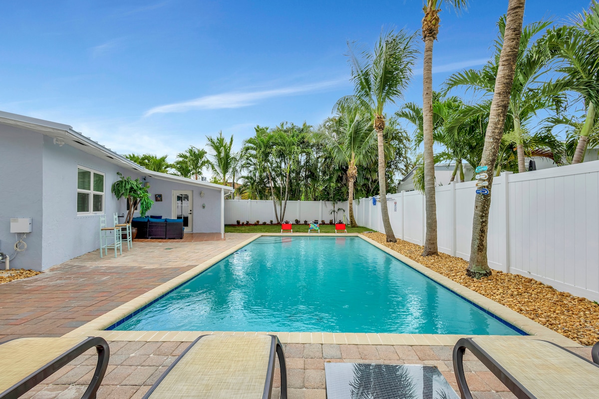 Bienvenue au chalet Hideaway, une toute nouvelle maison entièrement rénovée de 3 énormes chambres et 3 salles de bain à seulement 2 pâtés de maisons de l'Intracoastal et à 4 pâtés de maisons de la plage, nichée sur près d'un demi-acre de jardins tropicaux luxuriants à Lantana FL. Situé dans une rue calme, profitez de tout le confort d'une maison moderne à l'intérieur, avec des chambres joliment décorées, une cuisine entièrement approvisionnée, une salle à manger, un salon, une salle de jeux avec machines à sous, des arcades, Atari et un bureau. Massif écran de lanai et gigantesque jardin arrière isolé.