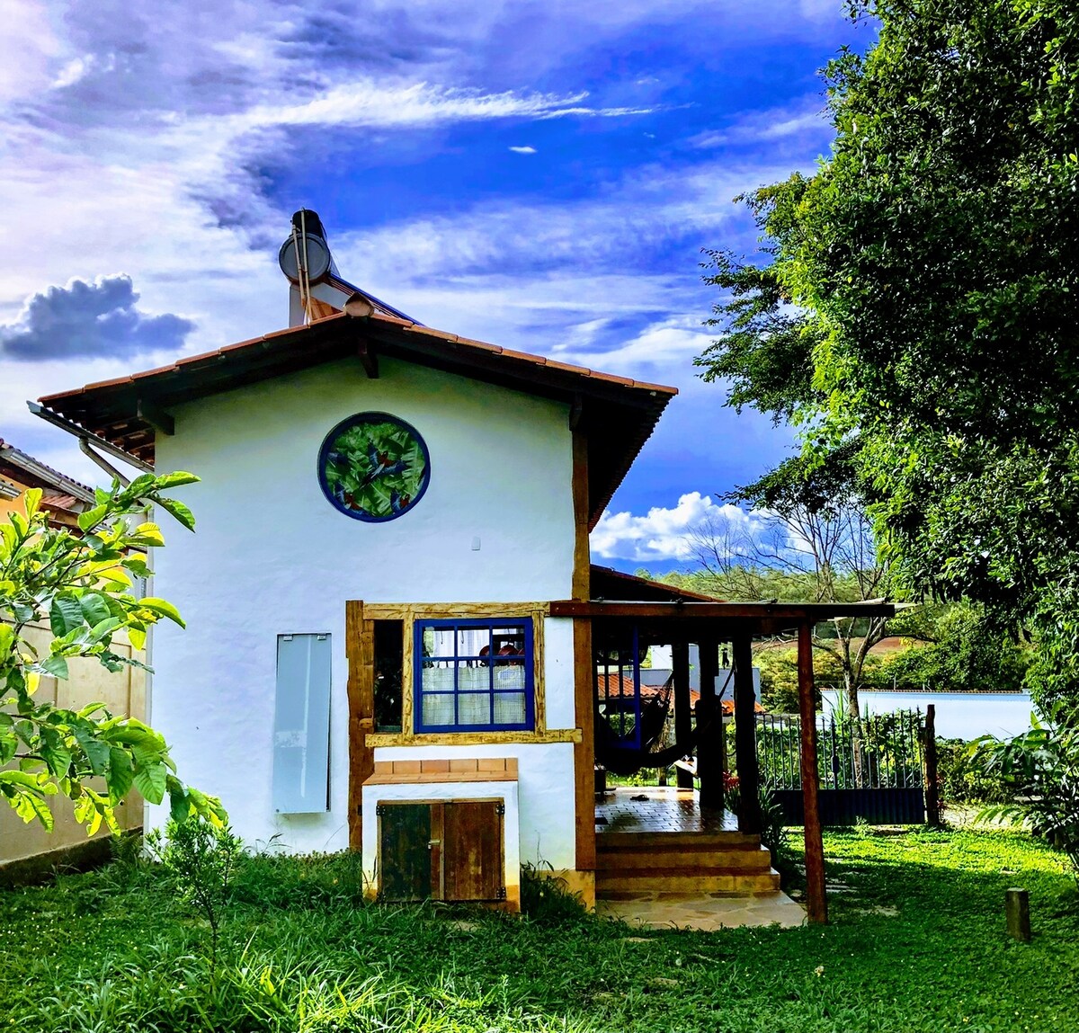 Chalet confortable avec hamac sur le porche où un délicieux petit déjeuner est servi. Jardin et chant des oiseaux, avec vue sur la montagne, cuisine entièrement équipée, barbecue, four, cafetière, grill. Mezzanine avec 1 lit double et salon avec 1 canapé-lit. Idéal pour un couple ou jusqu'à 4 personnes. À un pâté de maisons d'un bar, d'un restaurant, d'une pizzeria, d'un espace pour la pratique du yoga. Nous travaillons avec self-check-in