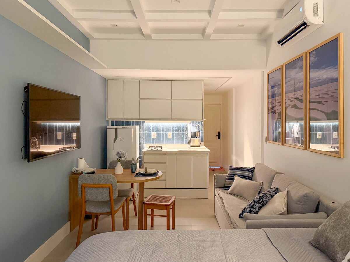 Le Loft est à 03 pâtés de maisons de la plage, au poste 12. En quelques pas, vous trouverez la rue la plus fréquentée avec les meilleurs restaurants et bars à part le marché, Hortifruti et la pharmacie 24h. Zone de sécurité. Il a été récemment rénové et chaque détail pensé pour votre confort. Tout ce que vous aurez besoin pour un court, long ou un séjour de travail sera à portée de main.