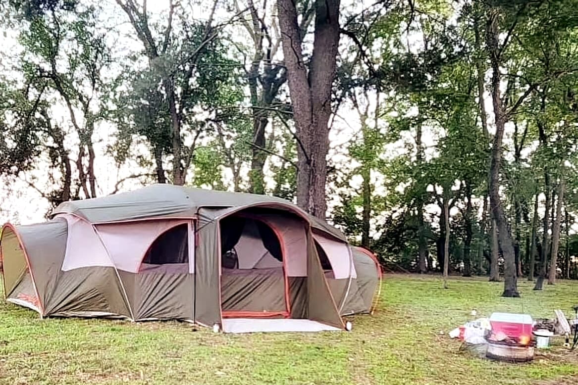 Nous vous invitons à séjourner à Hidden Ridge, un refuge boisé privé situé à Otter Lake, Girard, Illinois, pour une expérience de camping authentique. Une tente murale de 14 x 16 avec un lit Queen Size et une salle de bain séparée avec un espace pour cuisiner à l'extérieur est fournie. Il y a beaucoup d'espace pour des tentes, des lits de camp ou des matelas pneumatiques supplémentaires.