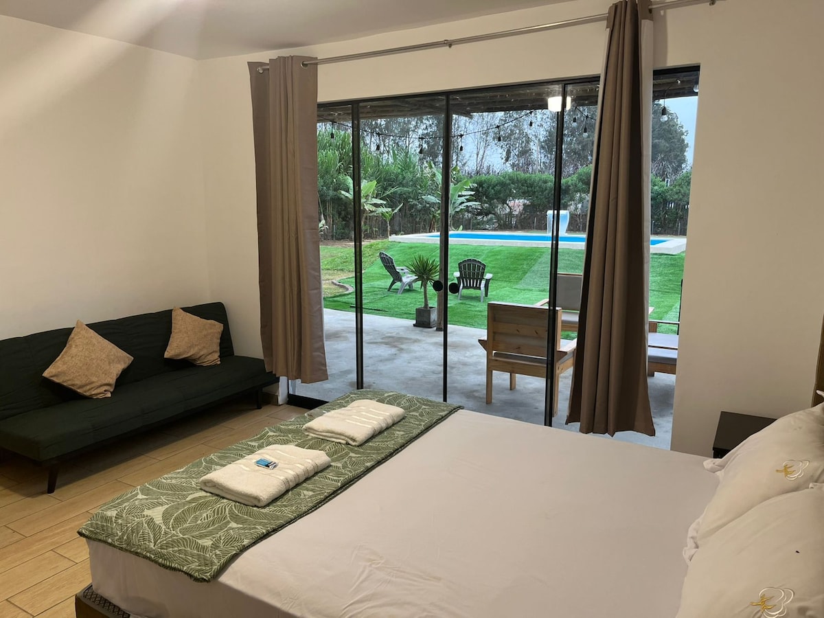 Plongez dans l'exclusivité de ce logement écologique, situé à seulement 10 minutes de la place principale de Lunahuaná. Doté d'un design unique avec des détails en pierre, de hauts plafonds et de grandes portes en verre qui offrent une ventilation naturelle et remplissent chaque coin d'une lumière abondante. Idéal pour les familles à la recherche de confort et de nature, avec une piscine privée, des terrasses spacieuses et des aires de jeux pour enfants. Entouré de vergers, il offre paix, intimité et est entièrement équipé avec toutes les commodités.