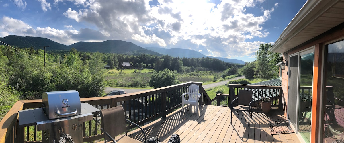 Détendez-vous dans une maison de campagne conçue par un artiste. Dotée d'une grande cuisine ensoleillée, d'un poêle à gaz confortable Vermont Castings, de chambres confortables et d'espaces de détente, y compris une grande terrasse orientée plein sud pour profiter du soleil toute la journée. Elle borde des milliers d'acres de Catskill Park Preserve et offre un accès à des sentiers de randonnée, des excursions en trolley, des lieux de baignade, des chutes d'eau, des lacs et du ski. À quelques minutes de Tannersville et Hunter Mt et à quelques minutes en voiture de Woodstock, il y a une abondance de boutiques et de restaurants à proximité.