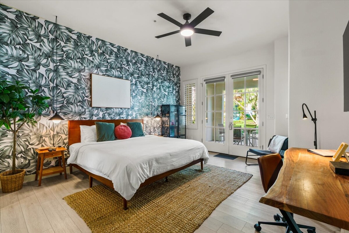 Détendez-vous au bord de la piscine dans cette élégante suite king à quelques pas de l'une des 12 piscines de La Quinta's Legacy Villas. Cette suite comprend 1 lit king size, une kitchenette, une salle de bain complète, un bureau, une télévision et un patio avec coin repas. Les équipements de la communauté comprennent 12 piscines, un café-restaurant, une salle de sport complète, un village de hamacs, un club-house et plus encore. Legacy Villas est situé à environ 5 minutes de Old Towne La Quinta pour un accès facile aux restaurants, aux pubs locaux et aux magasins. Permis n° 260156