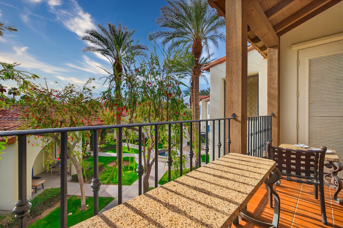 Cette chambre de style villégiature offre une vue imprenable sur le désert et les montagnes de Santa Rosa. Bien approvisionné pour une matinée de détente sur le balcon. Situé dans une communauté privée fermée avec sécurité 24h/24 et 7j/7, 12 piscines, 11 jacuzzis, barbecues extérieurs, hamacs, cabanas, salle de sport et un restaurant situé sur les 44 acres magnifiquement entretenus. Adjacent au Waldorf Astoria La Quinta Resort & Spa et situé au centre près de la vieille ville de La Quinta, du tournoi de tennis Indian Wells, des terrains de golf PGA West et des terrains de festival.