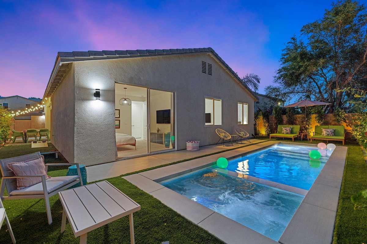 Aqua Aura is your ultimate vacation destination in Indio, CA! This 3 bedroom, 2 bathroom property boasts a backyard oasis complete with a pool and sun loungers, perfect for soaking up the California sun. Enjoy all the comforts of home in this beautifully appointed vacation rental. Nearby attractions include the Coachella Valley Music and Arts Festival, Joshua Tree National Park, and the Empire Polo Club. Book your stay at Aqua Aura today and experience the ultimate desert getaway!