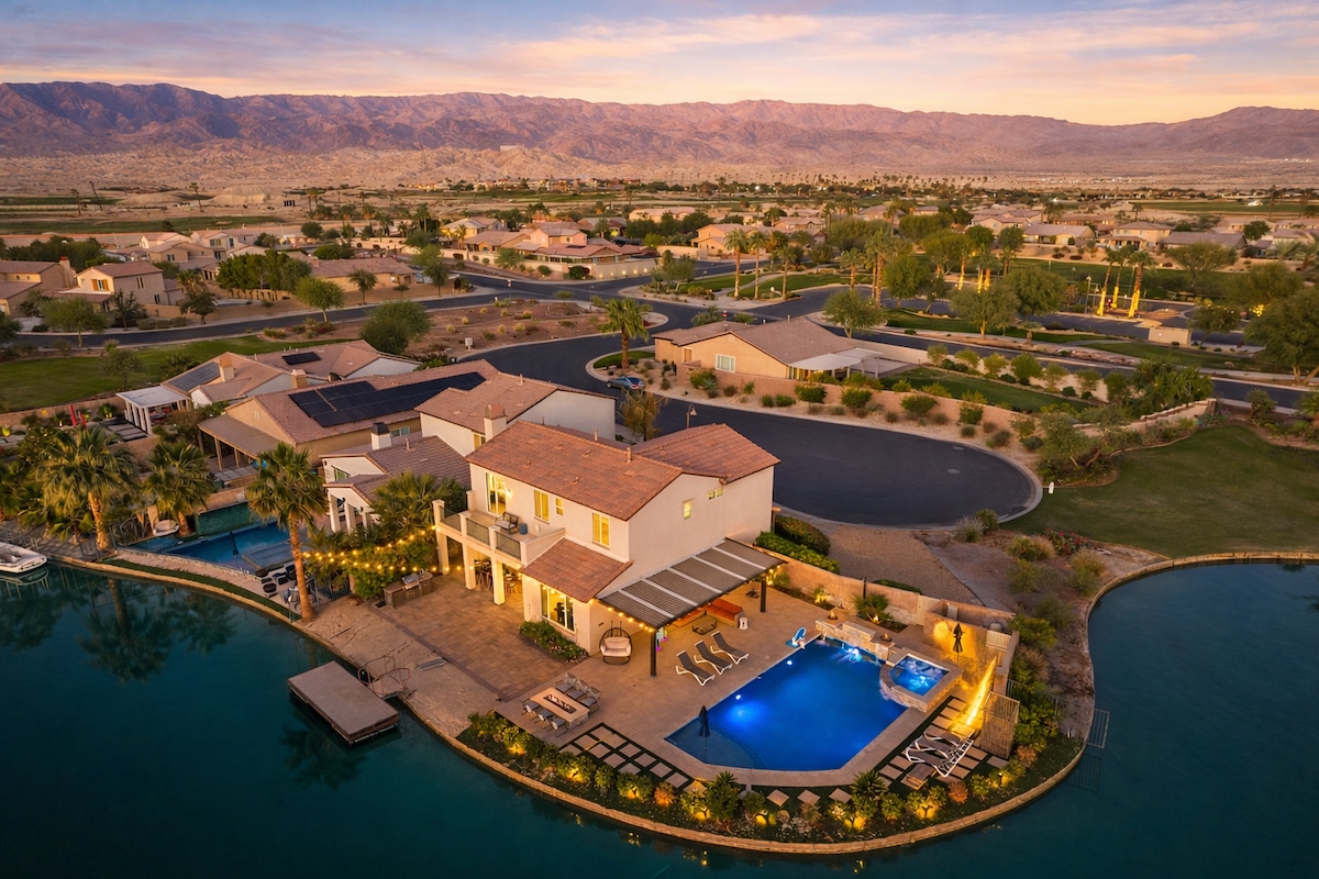 WOW! Villa Paradiso is a real paradise with a privileged location right in the middle of the lake! With its soft, calming bohemian and coastal inspired touches and Italian romantic theme from the magical Amalfi Coast, this lakefront home will sweep you off your feet! Come and enjoy your luxury waterfront patio with an infinity spool = pool + spa! The house is located in a 24-hr guard-gated community! Few min away from Coachella & Stagecoach festivals, Indian Wells Tennis Open and Palm Springs.