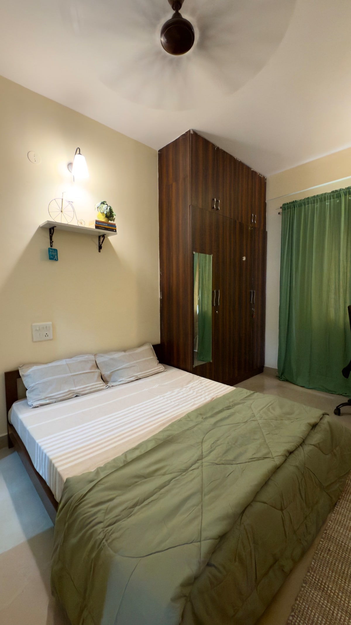 Entrez dans notre Cosy Cottage— un 1 BHK magnifiquement organisé rempli de charme bohème et de confort chaleureux. Des décorations tissées à la main, des couvertures douces, des cadres rustiques et des œuvres murales en macramé créent une ambiance chaleureuse et artistique. Idéale pour les couples, les voyageurs en solo ou les petites familles de 2 adultes, cette retraite confortable est un havre de créativité dans un espace soigneusement conçu. # pas de parking dans les locaux (1 emplacement de parking à 1 minute est disponible Stationnement pour vélos uniquement à l'intérieur des locaux
