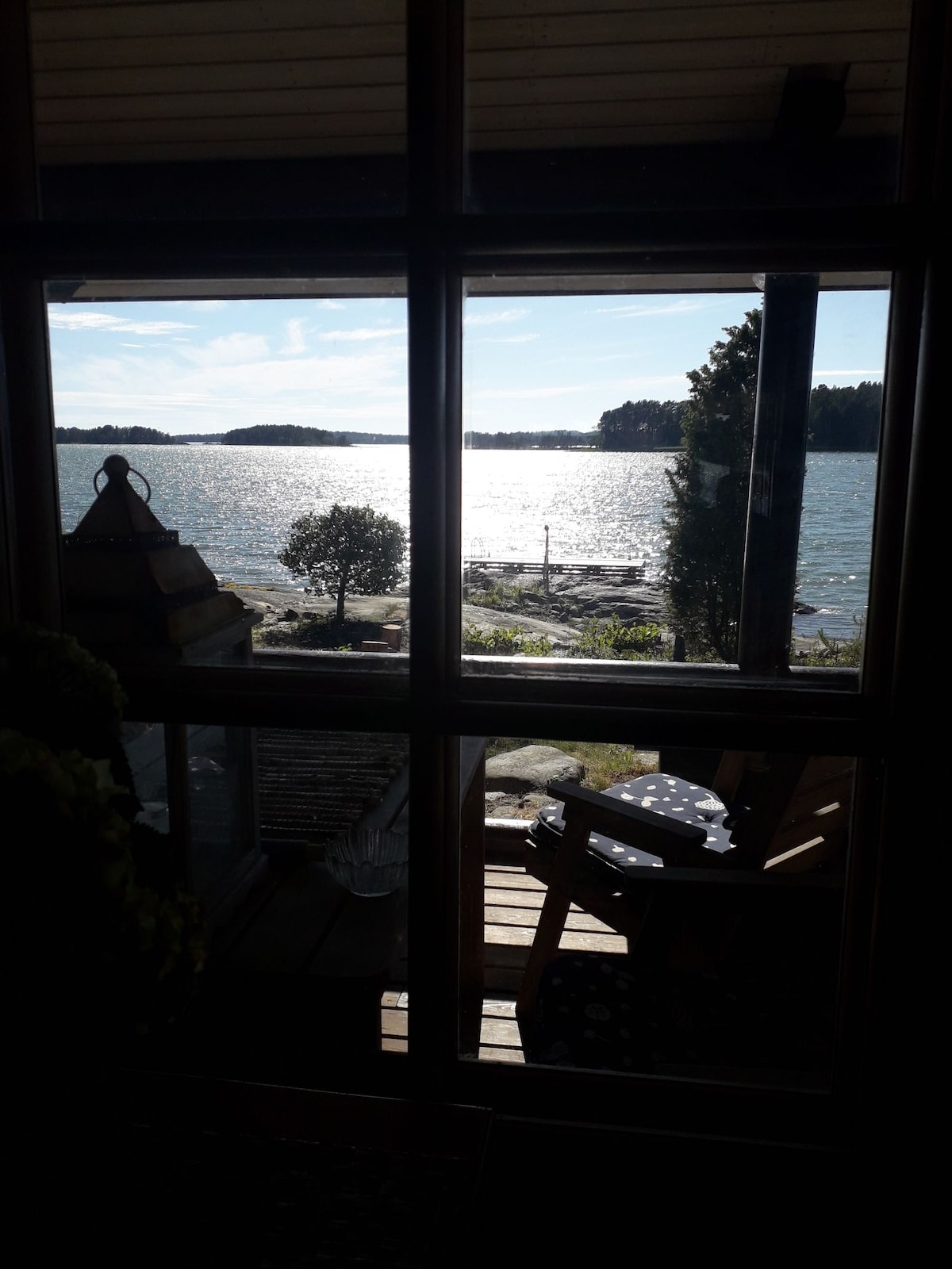 Ta en paus och varva ner i denna fridfulla oas. Stugan på 58 m2 ligger lite skilt från de 2 övriga stugorna på området. Finns 2 sovrum, vardagsrum, toalett, dusch med egen elektrisk bastu, Wi-Fi. En liten backe ner innan du når din egna brygga så passar ej för rörelsehindrad person. Djupt vatten vid bryggan så man bör vara simkunnig. Det går bra att förtöja sin egen båt vid bryggan eller hyra roddbåt av oss. Alla bekvämligheter finns i stugan, även luftkonditionering. Stugan renoveras vinter26