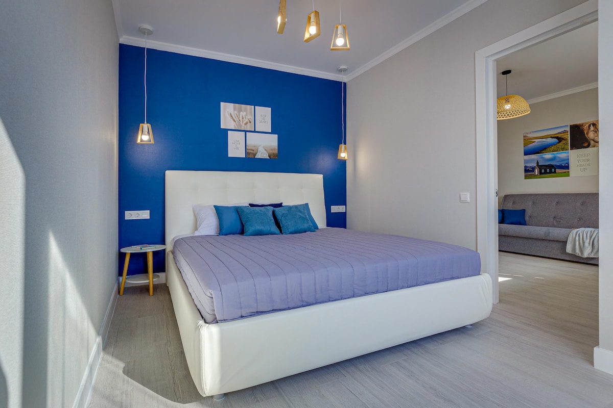 À 2 pas de la station de métro Alatau. Sans circulation, il est pratique de se rendre aux principaux endroits, y compris le centre historique. Et après avoir marché, vous y trouverez 64 m ² de confort, de propreté et de plaisir esthétique avec une vue panoramique luxueuse. Endroit parfait à Almaty pour admirer les montagnes et aller les conquérir. Un coin salon avec une chaise suspendue vous aidera à vous détendre après la route. Un espace de travail avec vue aérienne sur la ville. Internet jusqu'à 500 Mbit Une chambre séparée avec un lit confortable et des prises à proximité :)