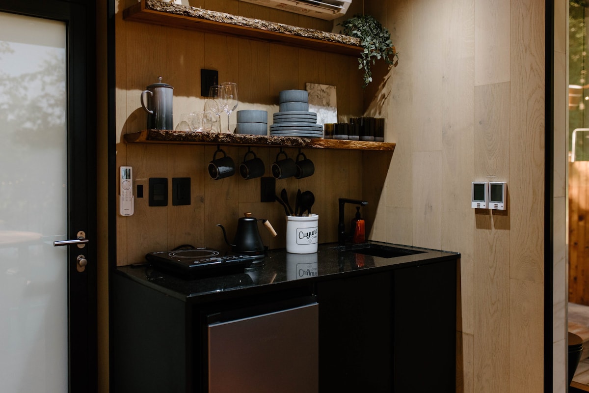 Évadez-vous dans la forêt à la cabane Ursa Minor. Construite en 2017, cette escapade confortable et tranquille comprend une cuisine complète, une salle de bain avec douche en cèdre, un chauffage électrique au sol, un poêle à bois, un revêtement en pin chaud partout et un loft spacieux. Un porche couvert, un foyer et une remise à bois entièrement approvisionnée se trouvent juste devant la porte. Votre séjour comprend l'accès à plus de dix kilomètres de sentiers traversant des centaines d'acres de forêt privée à quelques pas de votre porte.