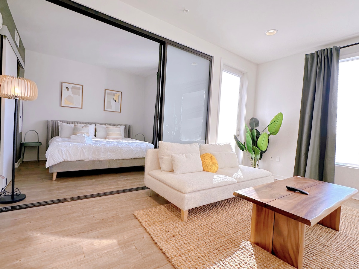 Bienvenue dans notre élégante retraite d'une chambre ! Niché au cœur de Santa Ana/South Coast, cet espace chic bénéficie d'un design contemporain, d'un mobilier élégant et d'excellents équipements. Idéal pour les voyageurs en solo ou les couples à la recherche d'une escapade urbaine tendance, notre appartement dispose d'un lit king-size confortable, d'une cuisine entièrement équipée et d'un coin salon confortable parfait pour se détendre. Avec un accès pratique aux restaurants et aux magasins locaux, vous découvrirez le meilleur de la vie sur la côte sud pendant votre séjour.