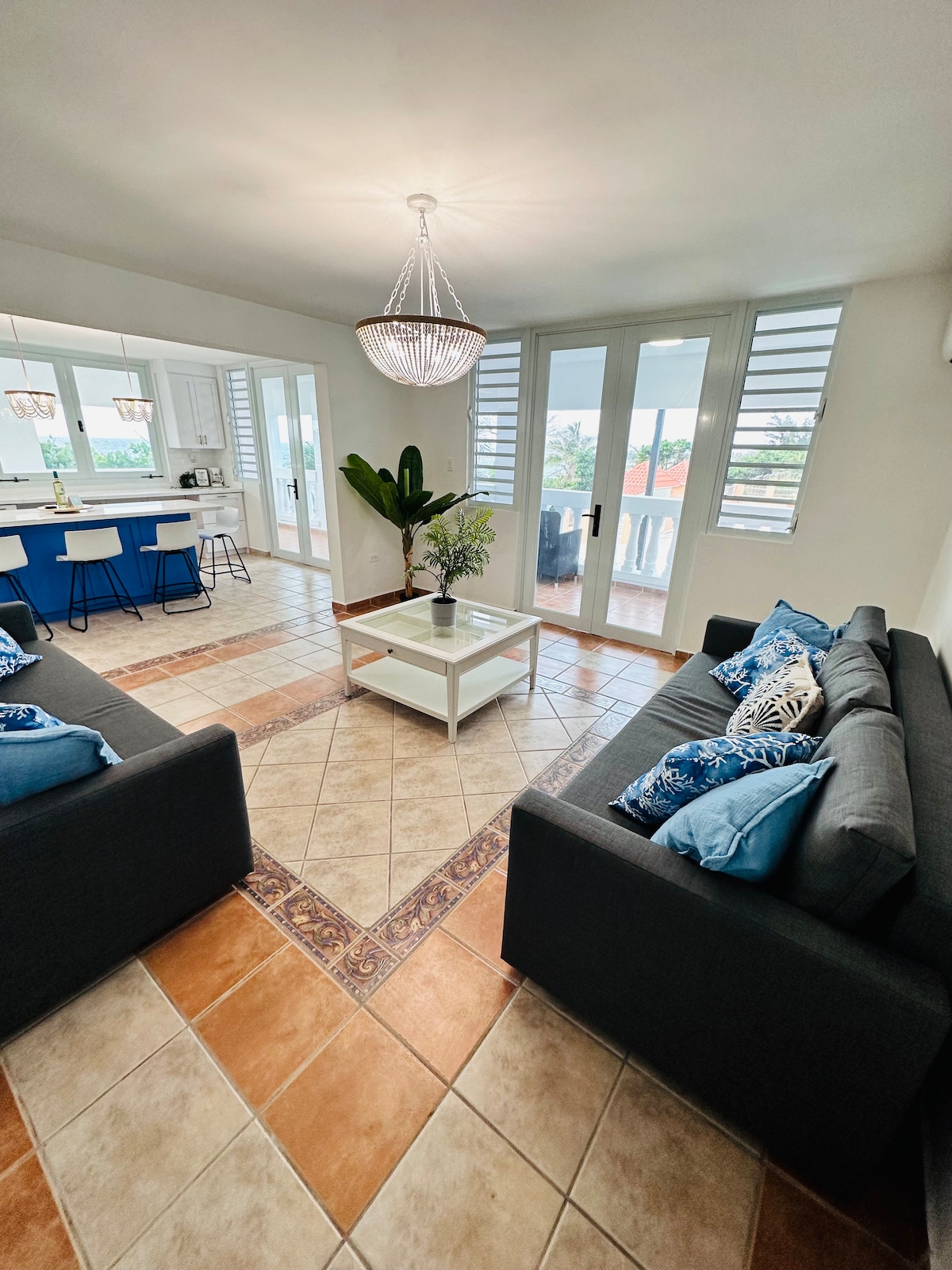 Spacious apartment, mere steps from the town square, pharmacies, dry cleaners and laundromats, supermarkets, restaurants and bars; less than a 7 minute drive to the shopping mall and some of the best beaches on the island. Enjoy your day out at the beach or around town, then unwind in a welcoming, cozy, and safe space, with the comfiest beds and a large patio with hammock. Fully equipped kitchen and laundry room, a 65” TV and Solar Backup power awaits you at Blanco & Rosado Luxury Apartment.