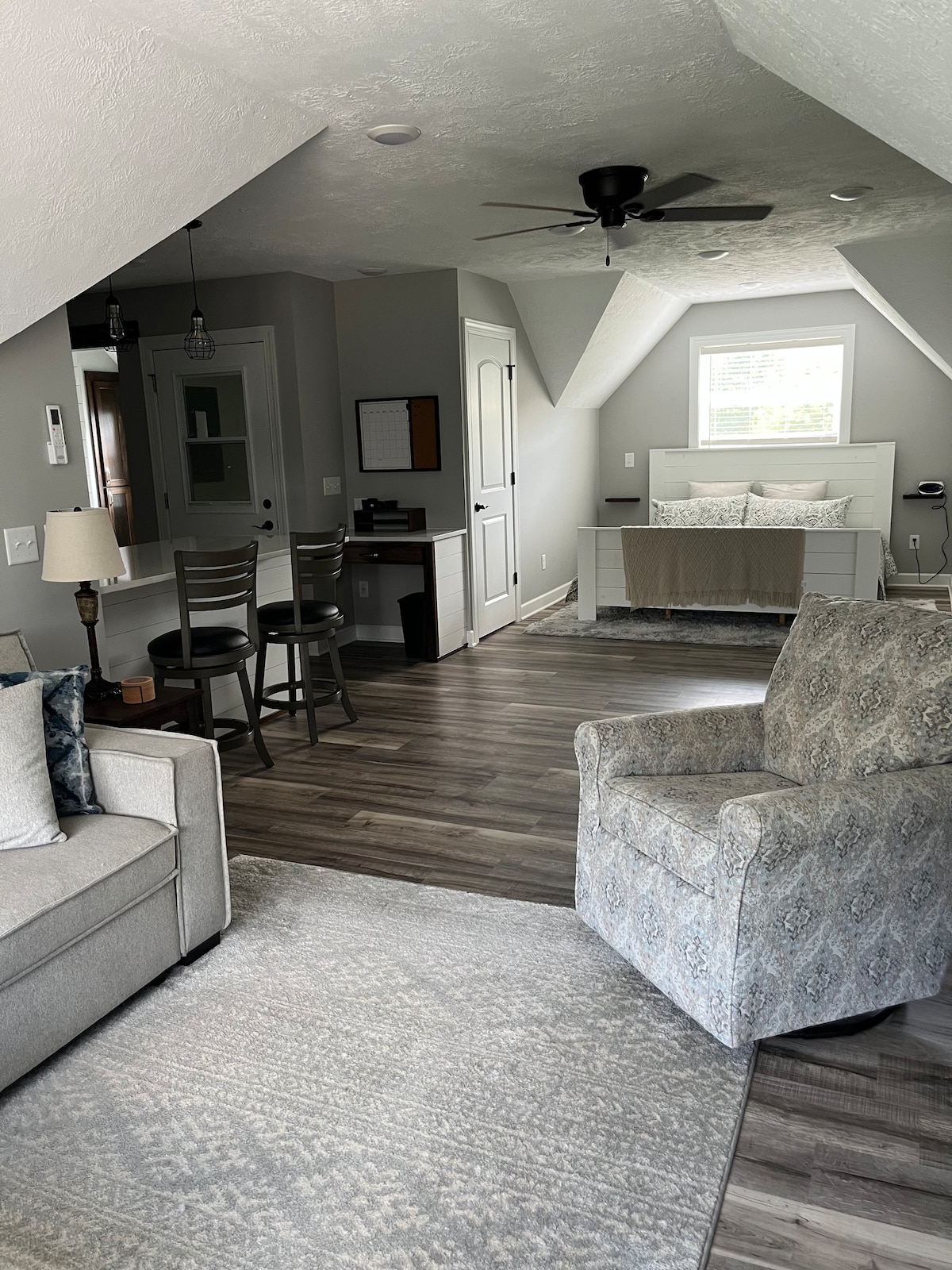 Bienvenue au Banker's Loft, un espace confortable et historique dans le centre-ville de Cambridge, MN. Le loft dispose de deux chambres, d'une cuisine complète et d'une salle de bains, d'un bar à café et d'un canapé avec télévision et Netflix. Il est décoré avec des touches modernes et vintage, créant une atmosphère charmante. L'emplacement est parfait pour explorer Cambridge et ses environs. Vous pouvez vous rendre à pied à de nombreuses attractions ou conduire jusqu'à la rivière Rum ou au lac Fannie. Idéal pour les couples, les invités de mariage, les voyageurs d'affaires ou les petites familles. Réservez maintenant !