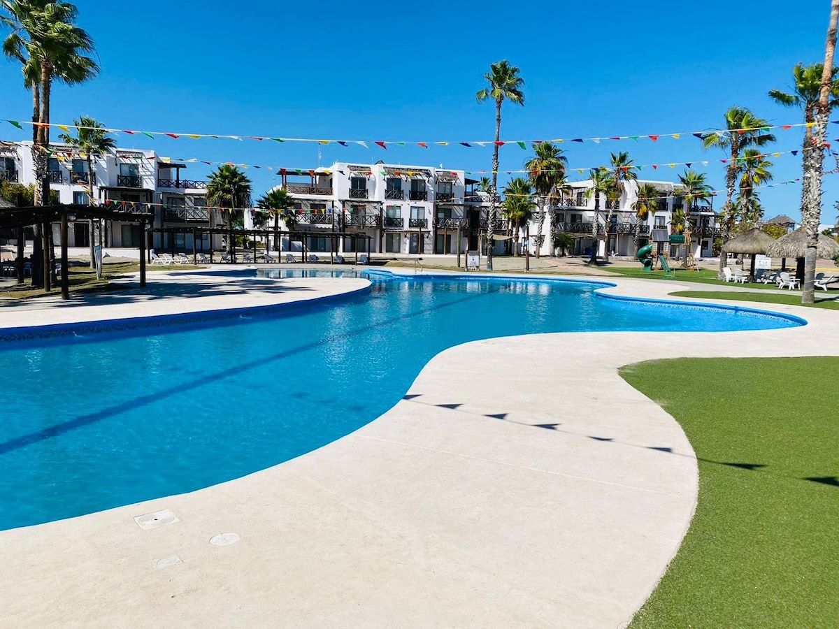Appartement confortable avec un excellent emplacement, entièrement équipé et meublé, 2 chambres, climatisation dans toutes les zones, cuisine avec cuisinière, réfrigérateur et micro-ondes, salon et salle à manger, dispose d'eau chaude, entièrement propre, accès à la plage 2 piscines, lac avec kayak, palpas, pistes cyclables, zone de dunes et diverses zones de loisirs. Uniquement concept familial, la plage est accessible à pied