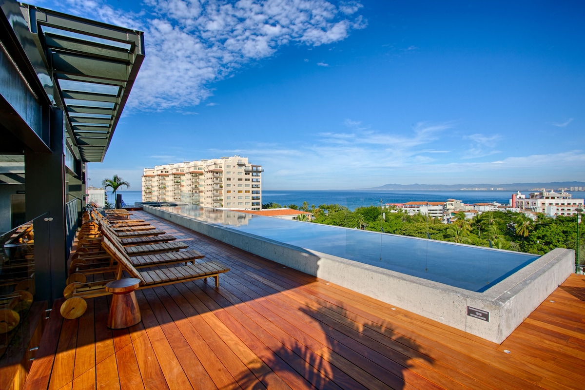 Little Piece of Heaven, Breathtaking 360° views of the ocean bay, downtown and mountains from the phenomenal rooftop, infinity pool and other amazing amenities. Charming condo with modern decor in one of the most Sought-after building "Avida", situated in Romantic Zone. Avida is located in the most popular neighborhood in Puerto Vallarta, known for its sandy beaches, Los Muertos Beach, Cafés, Restaurants, Bars, Shopping, Romantic walks and nightlife. The best location in Puerto Vallarta!