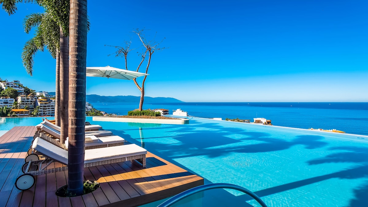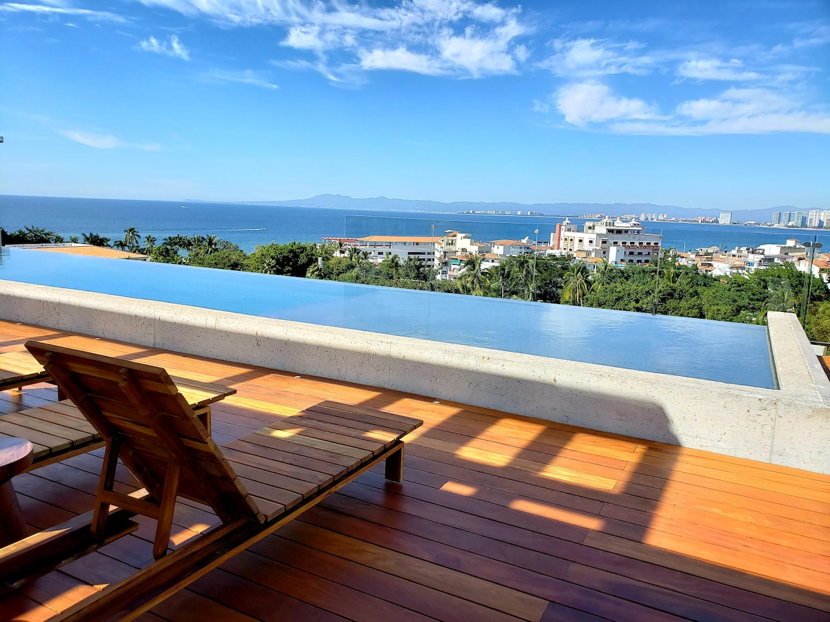 Superbe piscine sur le toit et jacuzzi dans la zone romantique PV